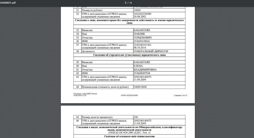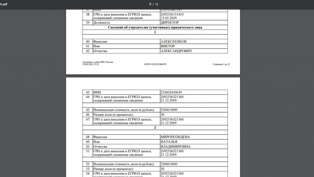 Здание кинотеатра "Варяг" сдавалось в аренду за 48 тысяч рублей в месяц ООО "Лас-Вегас". Компания зарегистрирована во Владивостоке. Основным видом работы организации, согласно данным ЕГРЮЛ, является деятельность в области спорта. Директор ООО "Лас-Вегас" — Андрей Миропольцев. Среди учредителей — Виктор Алексеенков, известный в спортивных кругах, как меценат и благотворитель, а также Наталья Миропольцева. Оба бенефициара имеют равные доли. Стоит отметить, что Андрей Миропольцев является также генеральным директором сети фитнес-клубов "Мастер Джим", а г-жа Миропольцева – заместителем гендиректора спортивной организации.