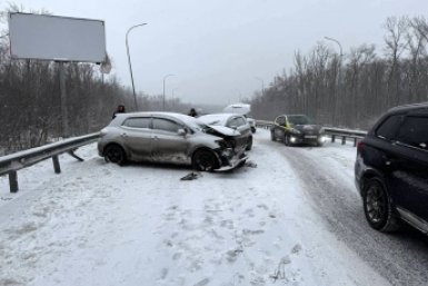 Машины занесло на скользкой трассе