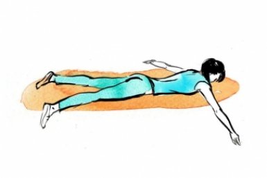Упражнение является простым и приятным, и оно приносит настоящую пользу здоровью. Основное его действие заключается в глубоком дыхании, вдыхая носом и выдыхая ртом, сопровождаемом активными движениями ног. Просто поднимайте наверх и опускайтесь попеременно ноги, пока лежите.