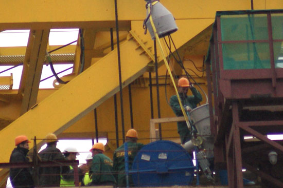 Сквозь вантовую оболочку в настоящее время пропускают стренды – составляющие ванты. Крепятся первые ванты к третьей секции руслового пролета моста.