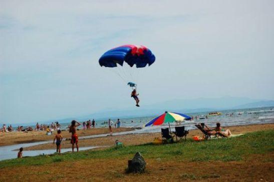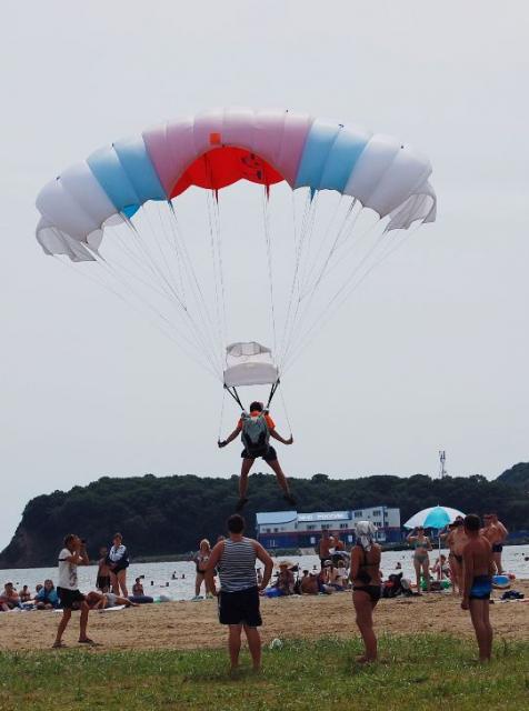 Владивосток, 14 августа, PrimaMedia. Более 60 лучших спортсменов клуба парашютистов "Седьмое небо" в субботу показали "класс", поднимаясь в воздух над первым пляжем в бухте Шамора. Они отважно демонстрировали многочисленным зрителям красоту прыжка с парашютом. И заразили смелостью публику - самые смелые решились прыгнуть в тандеме с опытными спортсменами, сообщает корр. РИА PrimaMedia.