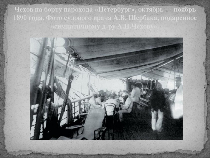 Как это связано с Чеховым? Дело в том, что по возвращении в Москву, первое, что делает Чехов — он пишет повесть "Дуэль". Повесть была задумана им еще до поездки, но имела другое название и была не окончена — в ней не хватало кульминационного момента и финала. Учитывая, что после возвращения, Чехов очень быстро окончил повесть, можно предположить, что Антон Павлович работал над ней в дороге.