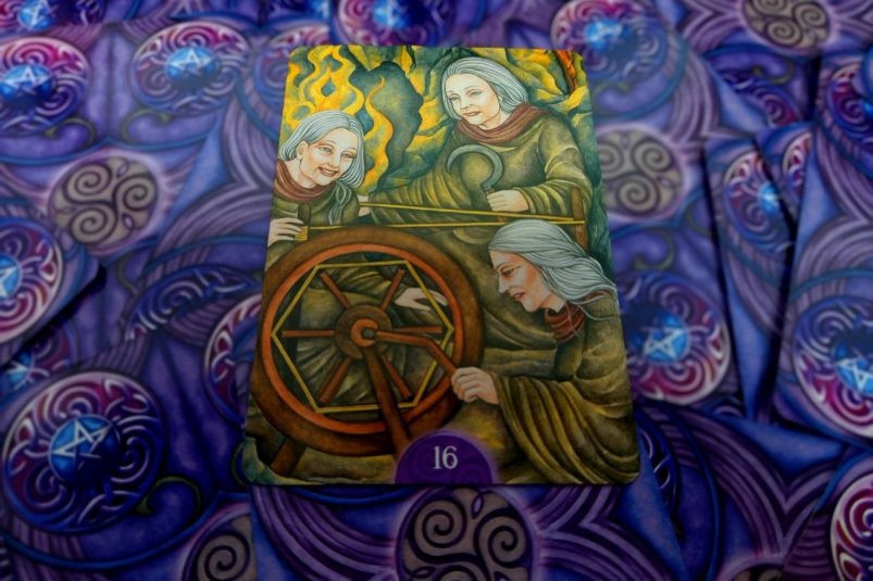 Карта "Богини Судьбы" — одна из самых мистических и значимых в колоде Викканский Оракул. Она символизирует высшую божественную справедливость, карму, предопределение и помощь Высших сил. Эта карта приходит в тот момент, когда человек чувствует себя потерянным или одиноким, чтобы напомнить ему — за спиной всегда стоит невидимая поддержка.