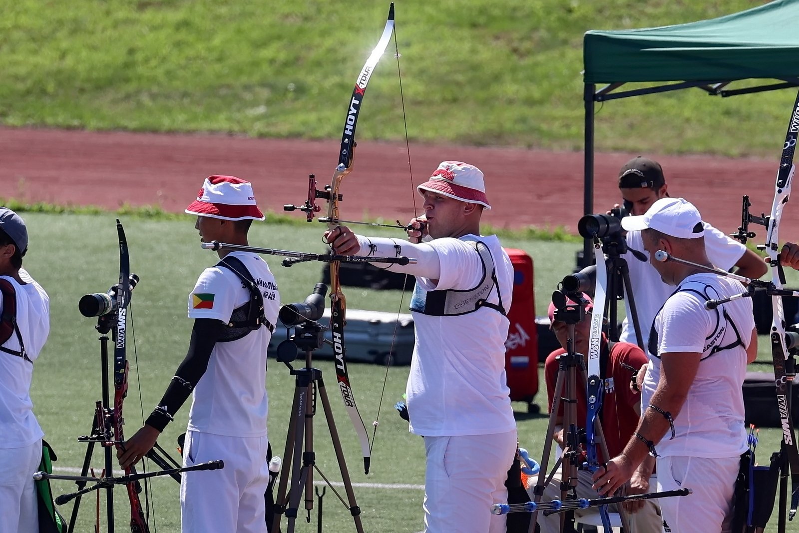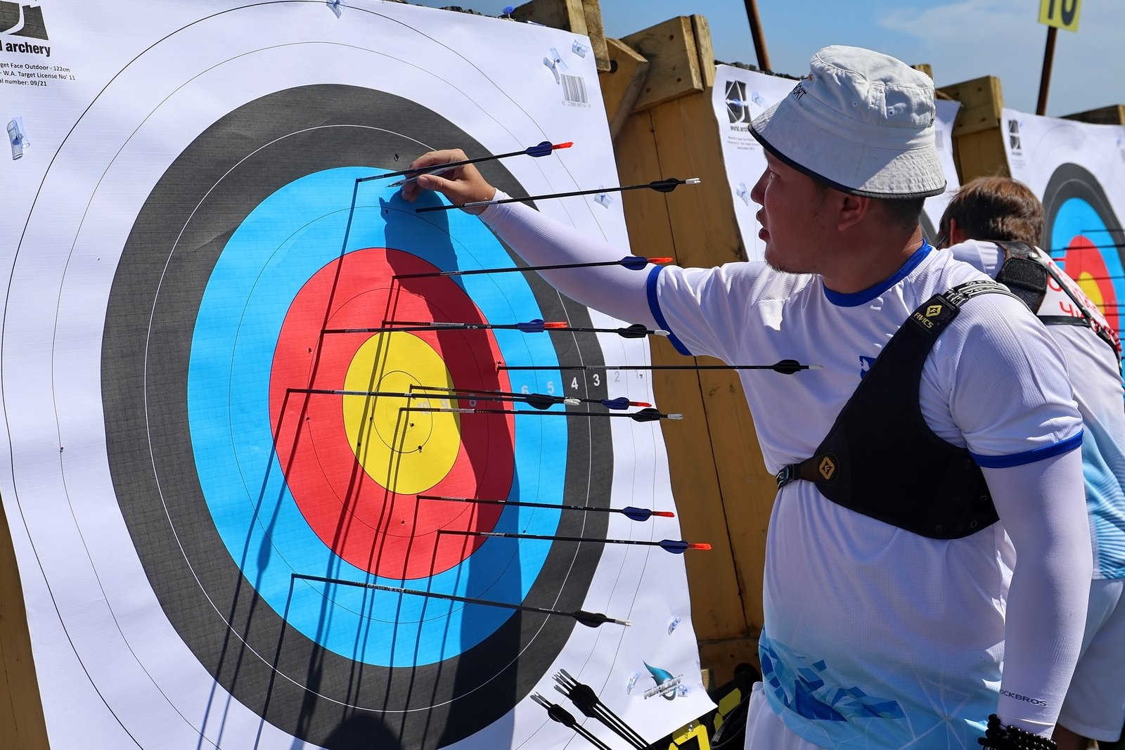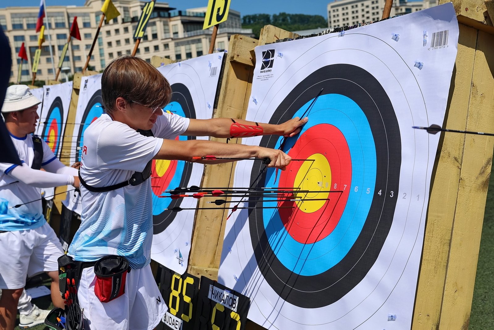 "Готовился к прохладе, а встретил духоту, — делится москвич, чемпион Европы среди молодежи Мухибулло Махмудов. — Руки потеют, упор скользит, но настоящий лучник должен уметь стрелять в любых условиях".
