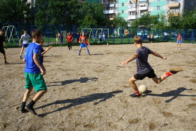 Игры проходили на спортивной площадке по улице Невской, 14. Она была построена год назад в рамках благотворительного проекта "Мой биробиджанский дворик". Судя по состоянию ворот и ограждения, а также поля, спонсорские деньги предпринимателей были потрачены не зря. Местные жители подарок берегут и используют для развития футбола. Причем, равнение держат на лучшие образцы мирового спорта. На параде открытия турнира прозвучали приветствия и от "Барселоны", и от "Испании". У взрослых это вызвало только понимающие улыбки.