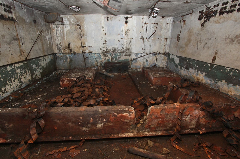 В командном пункте неизвестные спилили практически все металлические конструкции. Также отсутствуют лестницы на второй этаж.