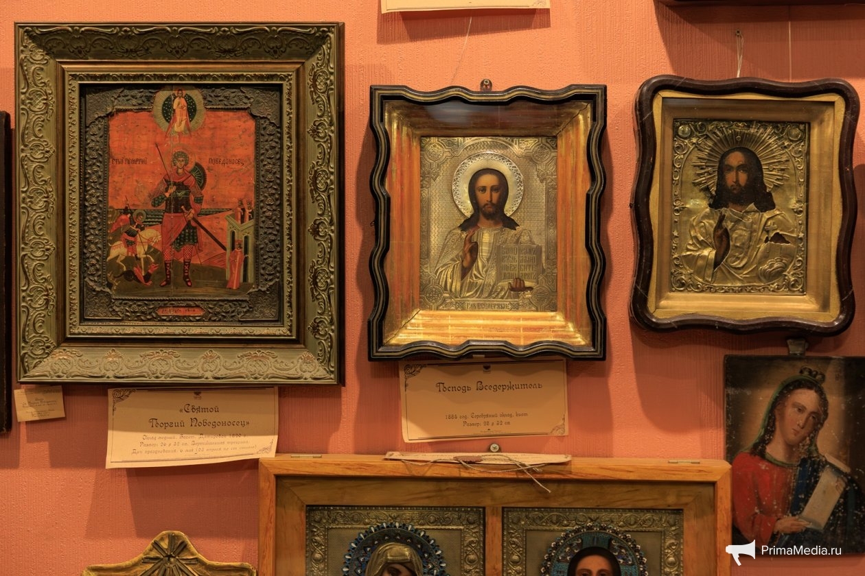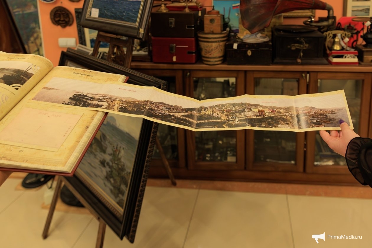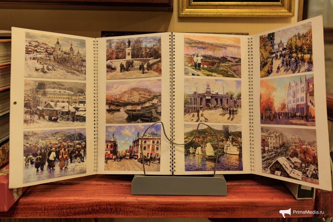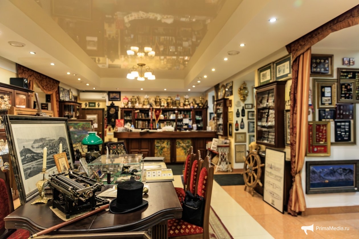 Живописи здесь отведён отдельный уголок. В Антикварной галерее собраны работы приморских художников, которые уже ушли из жизни, и потому каждая картина стала штрихом к портрету того Владивостока, которого мы больше не увидим. Среди авторов — Иван Рыбачук, Степан Арефин, Николай Жоголев, Владлен Камовский, Валерий Дружинин, Юрий Волков, Виктор Убираев и другие мастера, чья палитра стала частью культурной памяти региона. Среди артефактов, связанных с историей города и края, также фотографии военных моряков, служивших на Дальнем Востоке Российской империи, почтовые марки, этикетки и конверты с видами города.