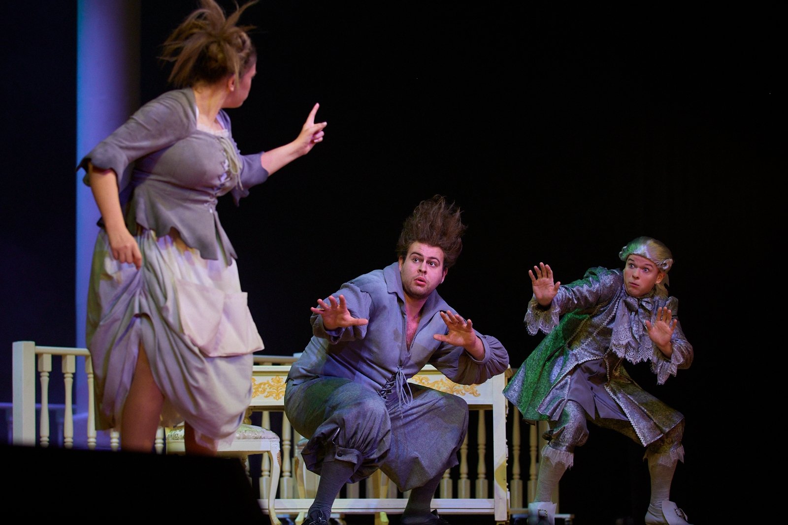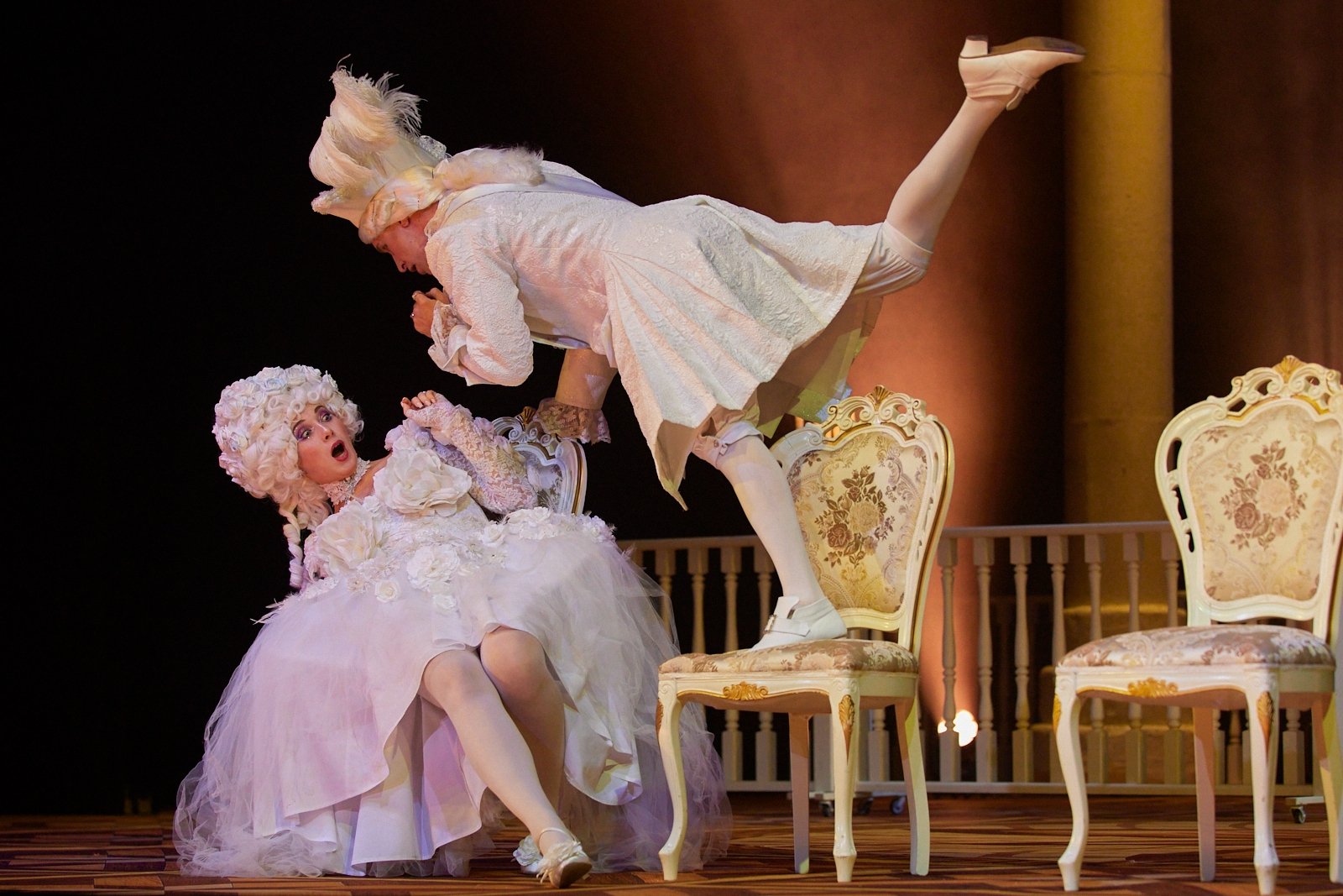 Первые премьерные показы спектакля "Любовь и плутовство" (16+) по бессмертной комедии Ж.-Б. Мольера "Мещанин во дворянстве" (16+) прошли в Приморском академическом драматическом театре имени М. Горького в конце прошлой недели. Режиссер-постановщик — Вадим Данцигер, художник-постановщик — Анна Сарапанова, музыкальный руководитель — Тамара Данцигер-Дельсаль, режиссер по пластике — Ярослав Францев, художник по свету — Павел Куделькин. В спектакле заняты: Заслуженный артист России Евгений Вейгель (господин Журден), Ирина Кулешова (госпожа Журден), Мария Федюченко и Дарья Лаптева (Люсиль), Михаил Чистяков (Клеонт), Валерия Запорожец (Доримена), Валентин Запорожец (Дорант), Александра Площинская (Николь), Алексей Чихунов (Ковьель), Сергей Гончаров (учитель музыки), Александр Темнов (учитель танцев), Иван Перепелкин (портной, дервиш), Никита Бекер (слуга, турок), Евгений Сидоров, Жанна Стрелкова и Полина Смагина (хор учеников учителя музыки, турки).