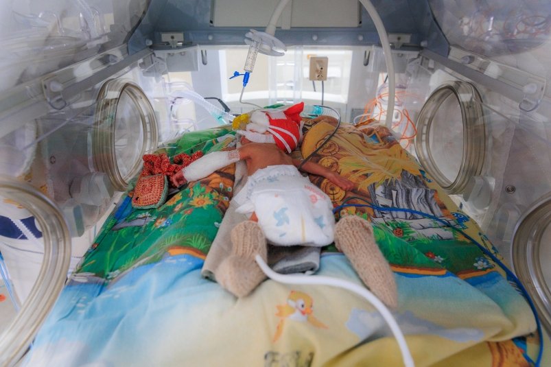 Спасение таких детей — это долгий и сложный путь, состоящий из нескольких этапов. Все начинается в отделении реанимации, затем малыши переходят на второй этап выхаживания, а дальнейшее наблюдение за их здоровьем продолжается в отделении катамнеза — вплоть до трехлетнего возраста.