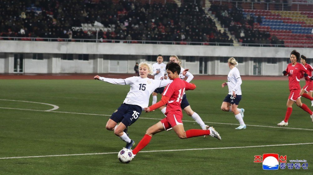 В четверг, 27 ноября, на стадионе имени Ким Ир Сена состоялся товарищеский матч между женскими сборными КНДР и России по футболу. За товарищеским матчем наблюдали трудящиеся, спортсмены, любители футбола и сотрудники посольства России в КНДР. Матч завершился победой женской сборной нашей страны КНДР по футболу со счетом 5:2, передаёт ЦТАК.
