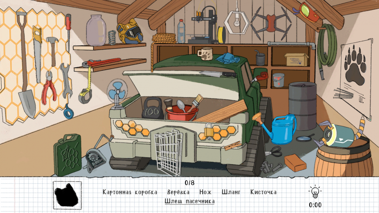 За доработку игры платформа оплатила работу команды. В проект были добавлены элементы жанра hidden object puzzle adventure, включающие поиск предметов. Игрок собирал медогонку, находил детали в гараже, соединял их и вращал барабан для отделения мёда. Затем появлялись предметы, связанные с лором "Берлоги" — шлемы пасечников, инструменты, элементы из комиксов. Далее игрок взаимодействовал с соседями-медведями, наливал им мёд и собирал котёл для свечей, подбирая верёвочки, красители и другие элементы. Прототип заканчивался на этом этапе, хотя планировалось продолжение.