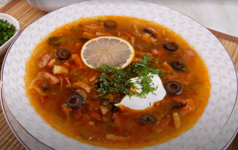 Легендарная советская солянка — это тот самый густой, наваристый суп, который многие помнят с детства. Его уникальный вкус создаётся сочетанием мяса, ароматной поджарки и лёгкой кислинки от солёных огурцов.