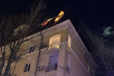 Отметим, по состоянию на 21.30 огнеборцы продолжают вести борьбу с возгоранием. При помощи пожарных автовышек они поднялись на мансардный этаж. На месте работает около 8 единиц техники. Место происшествие оцеплено сотрудниками полиции.