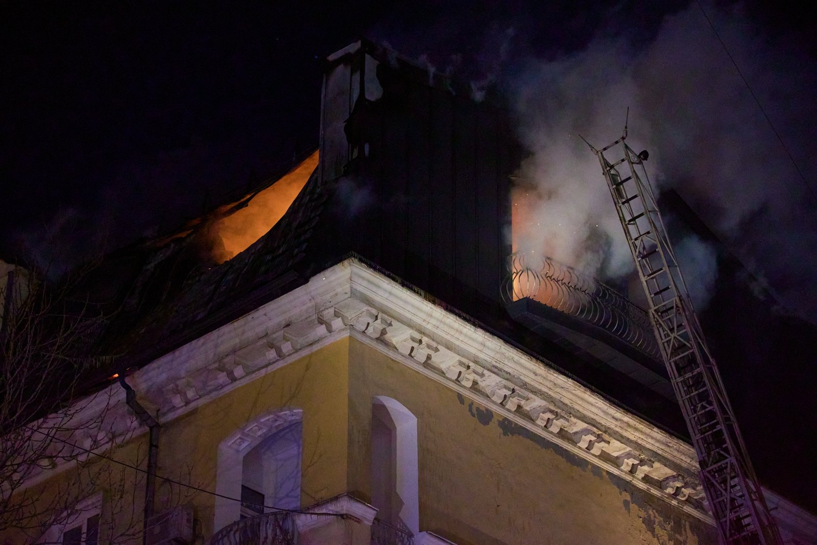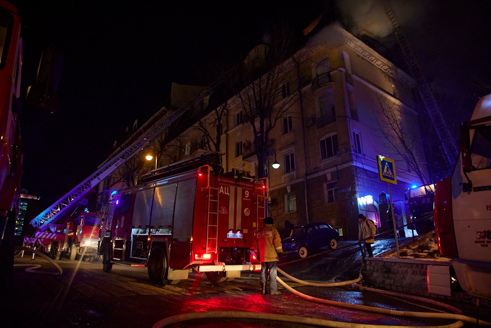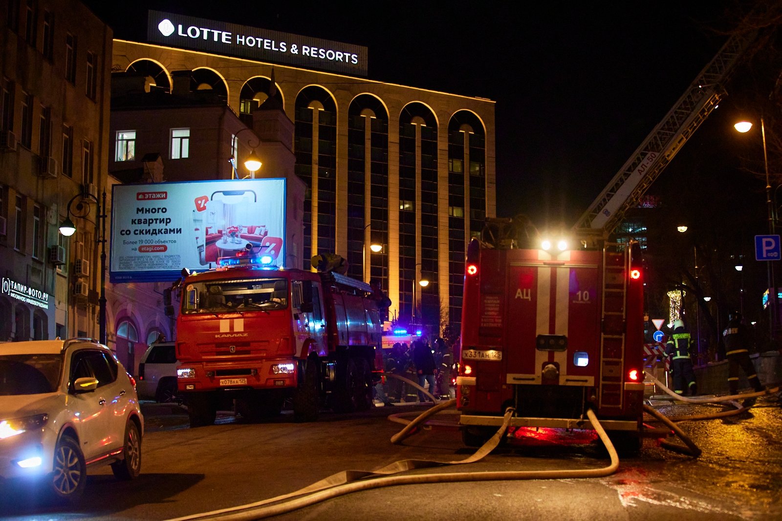 Больше двух часов огнеборцы МЧС России ликвидируют пожар в центре Владивостока Огнём охвачено правое крыло мансардного этажа на площади 400 кв. метров