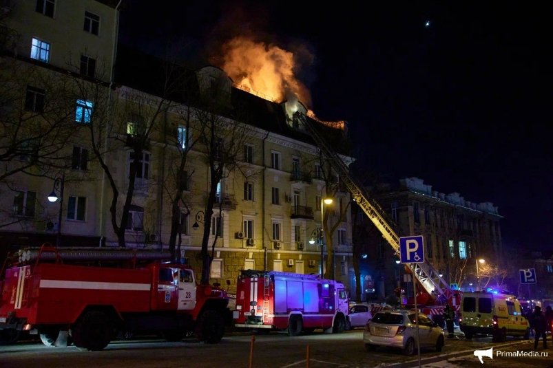 Серьезный пожар произошел во Владивостоке на ул. Уборевича, 10а. По словам очевидцев, загорелась крыша многоквартирного жилого дома.