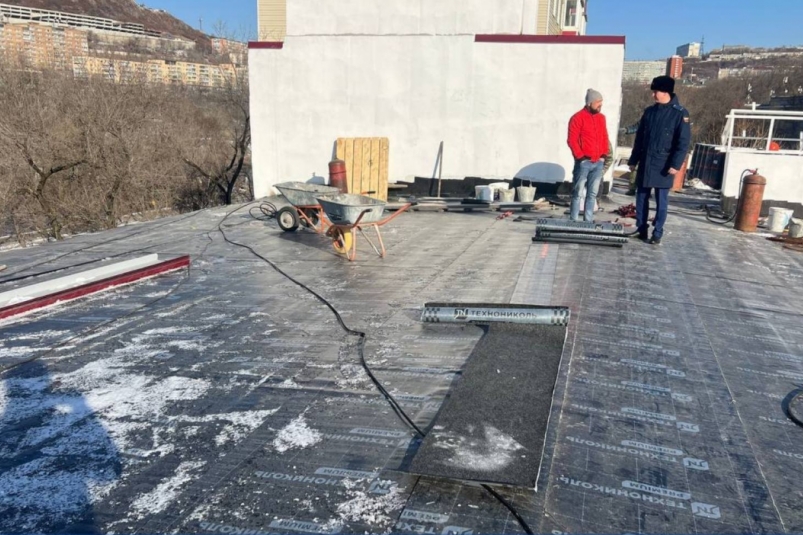 Прокурор района Роман Язвенко лично провел выездную проверку с участием представителей подрядной организации. В ходе осмотра он оценил качество и своевременность ремонта кровли, а также достаточность рабочей силы на объекте.
