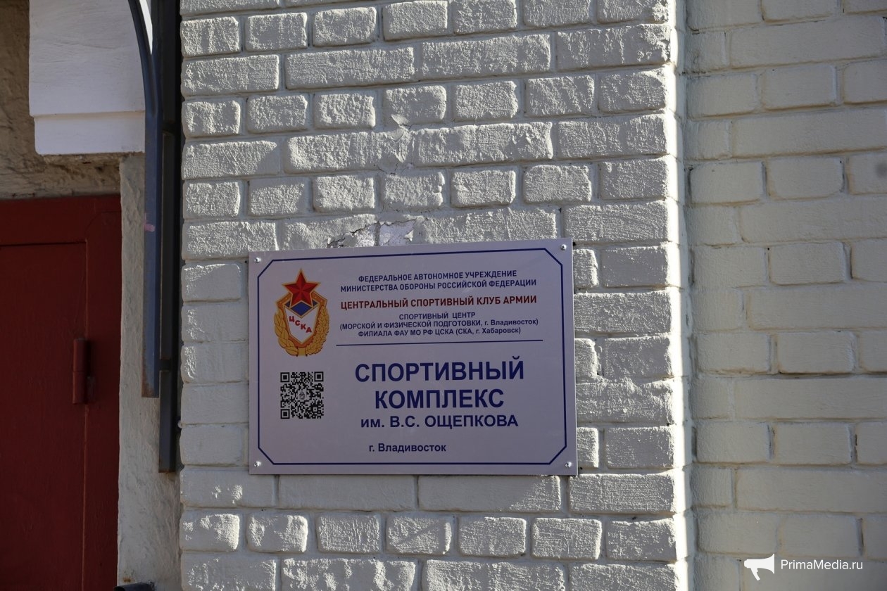 Спортивный центр находится на Корабельной набережной, 21 во Владивостоке. Здесь когда-то тренировался Василий Ощепков и тут прошли первые международные соревнования. Спортивный зал здесь до сих пор работает, здесь проходят тренировки и соревнования. Рядом со спортцентром уже стоит мемориал Ощепкову и его японскому учителю — Дзигоро Кано, который вручает Ощепкову чёрный пояс, а также сенсею Хидетеси Томабечи. Теперь имя пионера российских единоборств получил и сам спортивный центр.