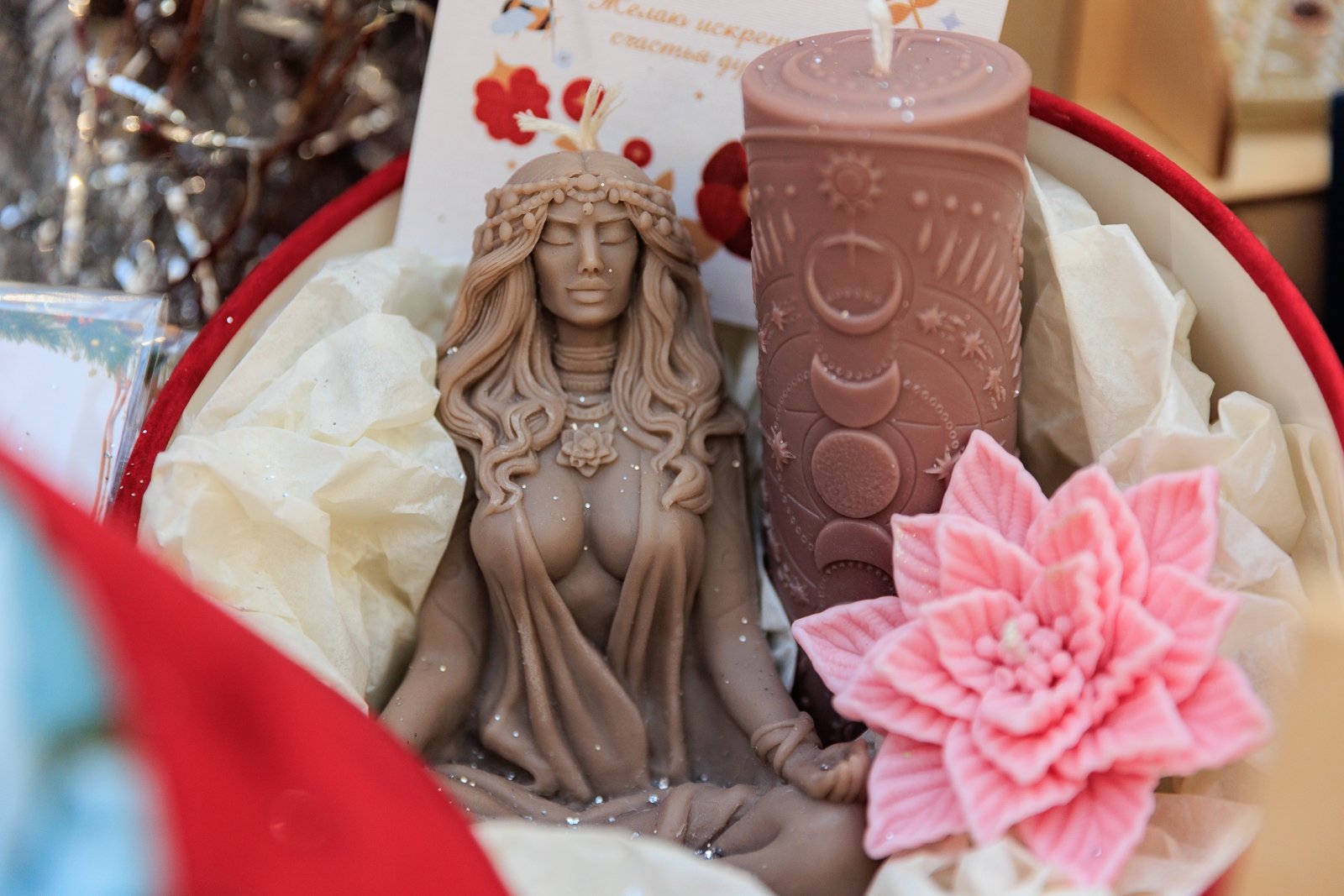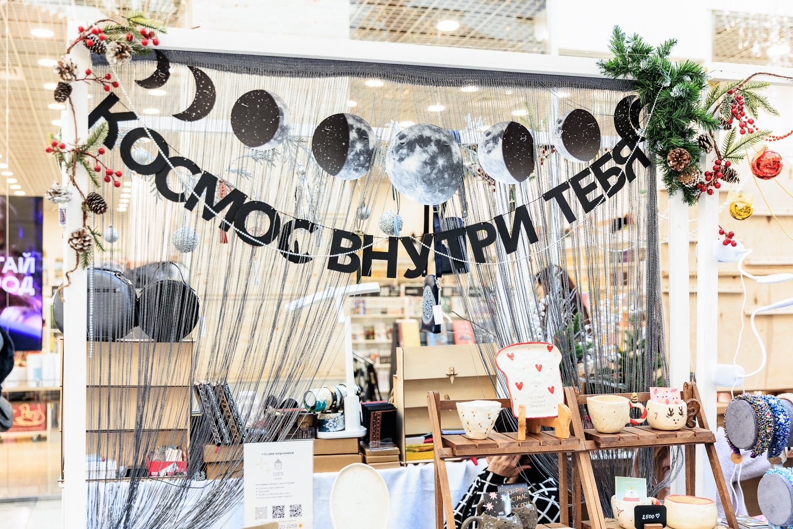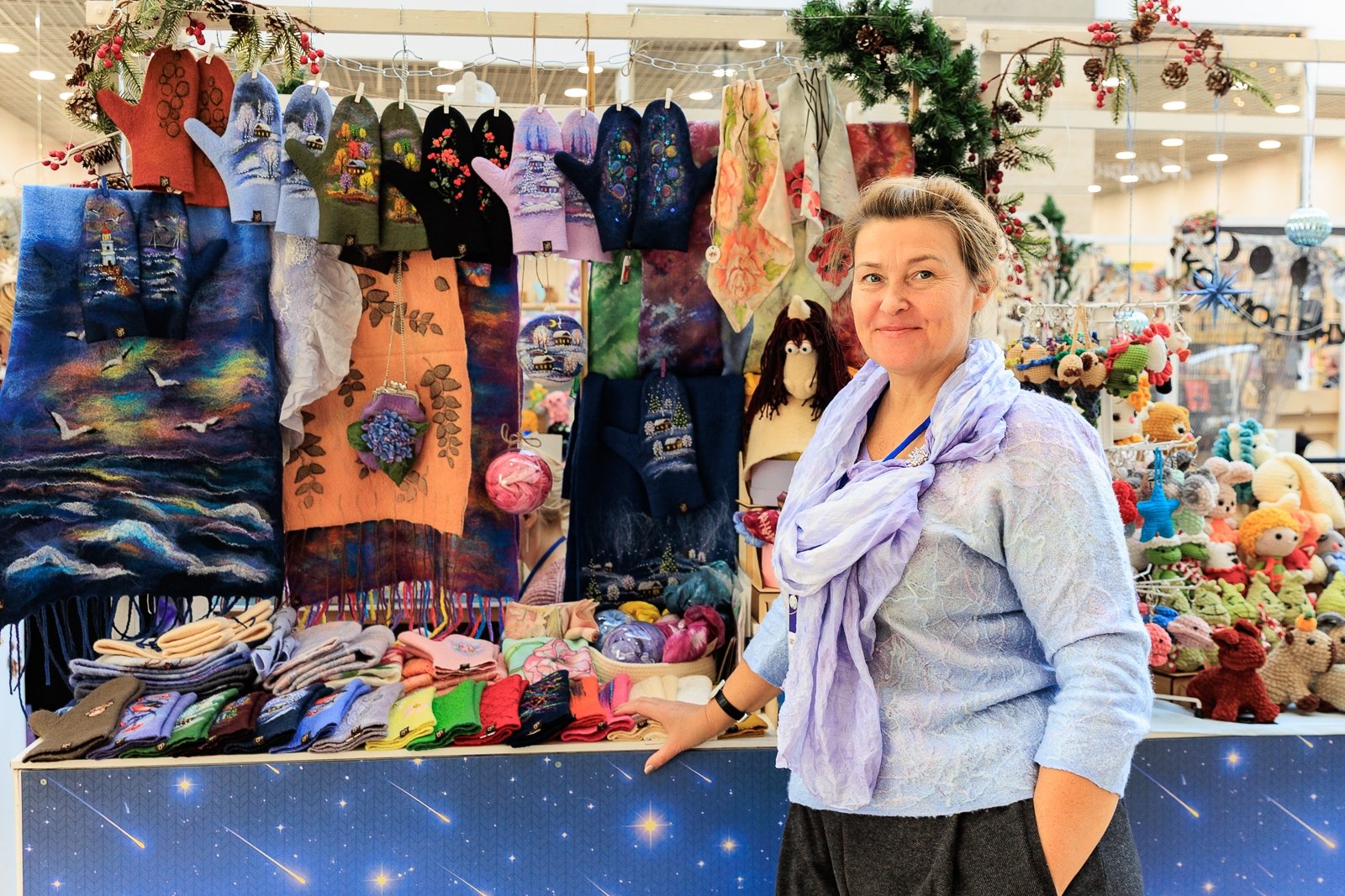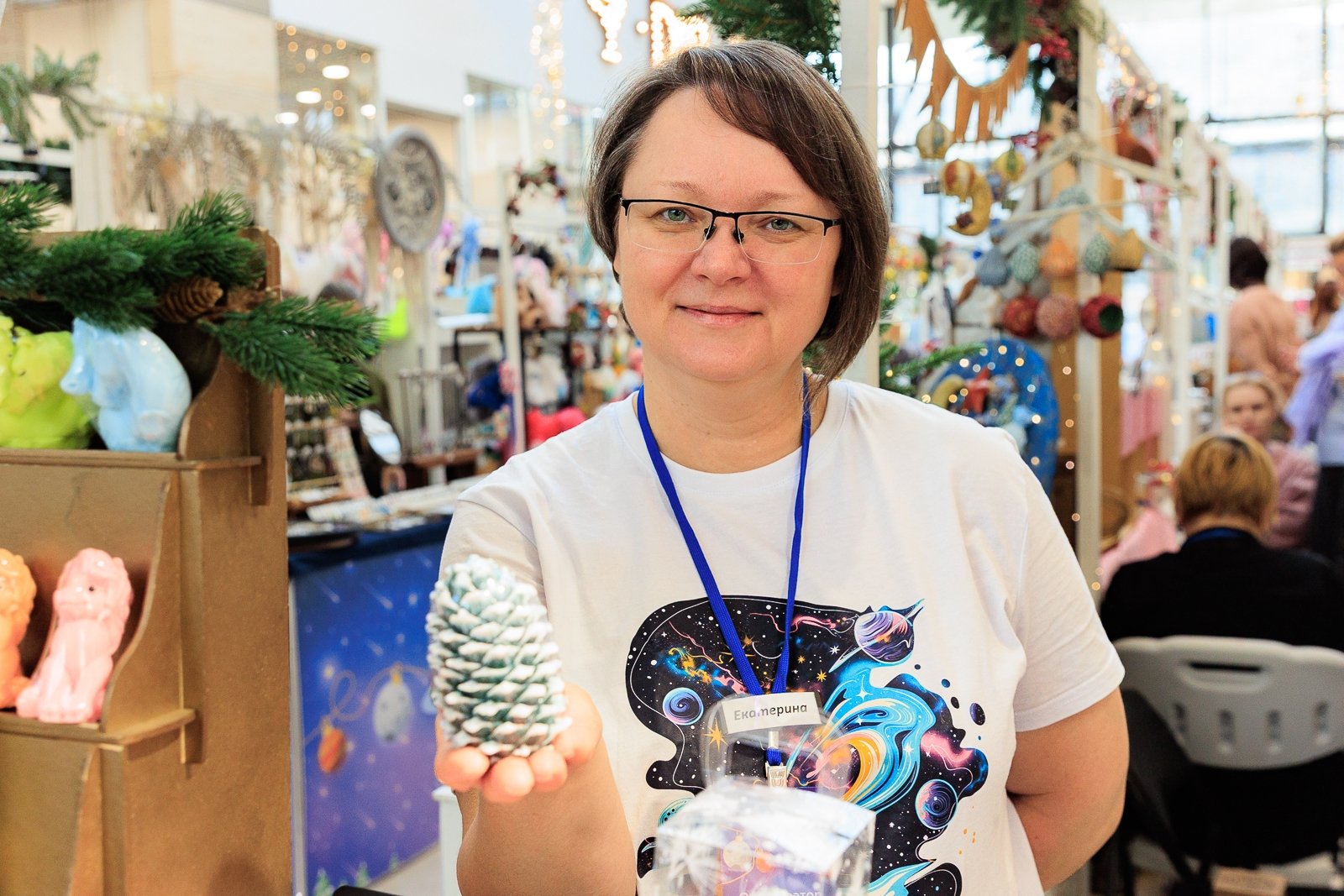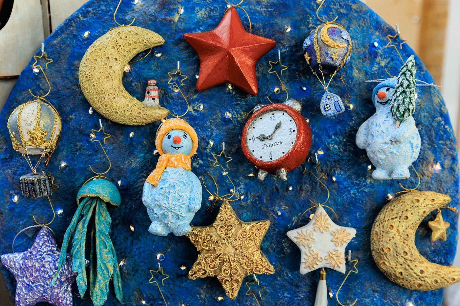 Сказочные персонажи, мерцающие огни, свечи и знакомые с детства символы приближающегося праздника. Ярмарка объединила работы 36 мастеров декоративно-прикладного искусства из разных городов. В этом году особенно много изделий с космической тематикой — и это не случайно. Уже в 2026 году мир отметит 65-летие первого полёта человека в космос.