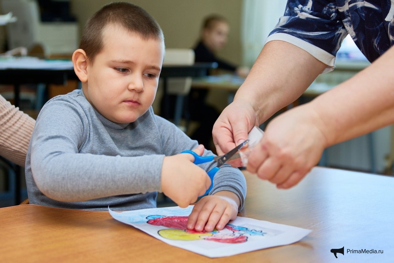 Знакомство с работой Центра началось с кабинета, где детей учат осознавать свои руки и работать ими. Для ребят с особенностями развития это часто становится первым шагом: у многих не развита моторика, они не умеют пользоваться руками. А между тем, именно работа руками запускает речь и общее развитие. Педагог дополнительного образования Татьяна Клейн объяснила, что моторика рук напрямую влияет на прогресс ребёнка. Через творчество — рисование, лепку, аппликации — детей не только учат владеть руками, но и помогают им расслабиться, что благотворно сказывается на психоэмоциональном состоянии и нервной системе. Этот творческий процесс развивает ребёнка и физически, и умственно, и эмоционально. Важно и то, что родителей здесь учат взаимодействовать со своими детьми, показывают, как вовлечь ребёнка в рисование или лепку, если дома это вызывает трудности.