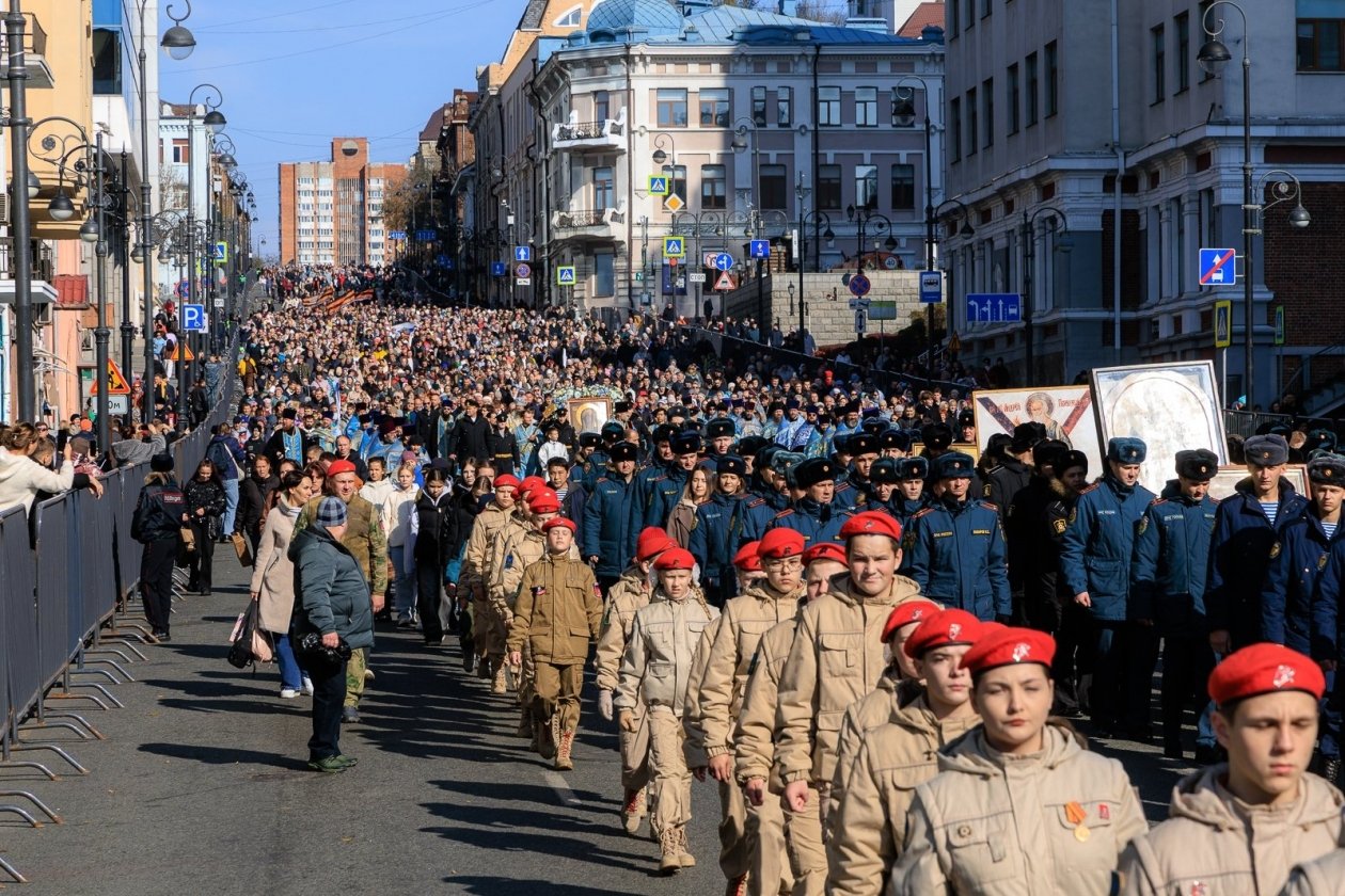 Во Владивостоке центральными событиями стали патриотический автопробег от мемориала "Боевая слава Тихоокеанского флота" до парка культуры и отдыха "Патриот", праздничные богослужения и крестный ход от Покровского собора до Спасо-Преображенского, а также гуляния на центральной площади Владивостока, концертная программа на набережной Спортивной гавани и многое другое.