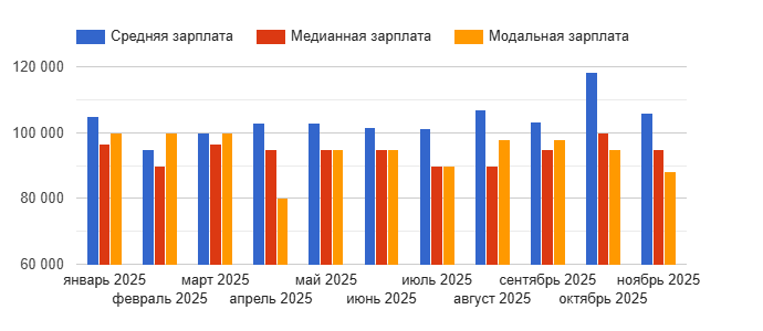 В то время как водители в чатах говорят о работе "за бензин", статистика по вакансиям демонстрирует иные цифры. Например, по данным сервиса "ГородРабот.ру" (12+), средняя зарплата, указанная в вакансиях на должность "Водитель такси" во Владивостоке за ноябрь 2025 года, составила 106 063 рубля. Медианное значение (середина распределения) находилось на уровне 95 000 рублей, а наиболее часто встречающаяся в объявлениях сумма (модальная зарплата) — 88 000 рублей.