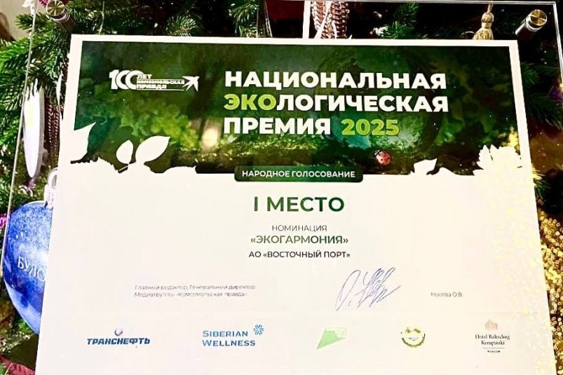 PrimaMedia, 15 декабря. Подведены итоги ежегодной Национальной экологической премии "Комсомольской правды" (18+). АО "Восточный Порт", по мнению народного и экспертного жюри, признано лучшим в номинации "ЭкоГармония", сообщает пресс-служба АО "Восточный Порт".