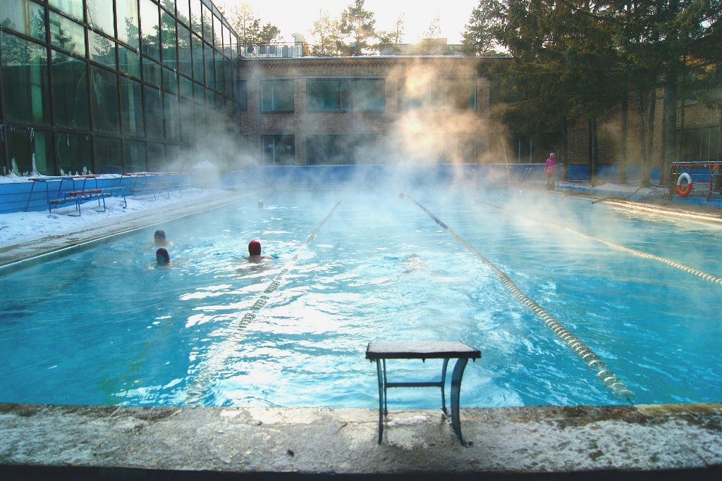 Когда вокруг сугробы и мороз, особенно приятно оказаться в тёплой воде под открытым небом, среди елей, пара и экзотической зелени. Такой "релакс без спешки" сегодня доступен и в крае. Теплый бассейн под открытым небом расположен в спортивном комплексе РЖД в Уссурийске. Он работает и зимой, и летом. Температуру воды здесь поддерживают в районе +32° С. Для посещения достаточно взять купальные принадлежности и полотенце — медицинская справка не требуется. Также здесь есть настоящий зимний сад с пальмами и разными видами тропических и субтропических растений.