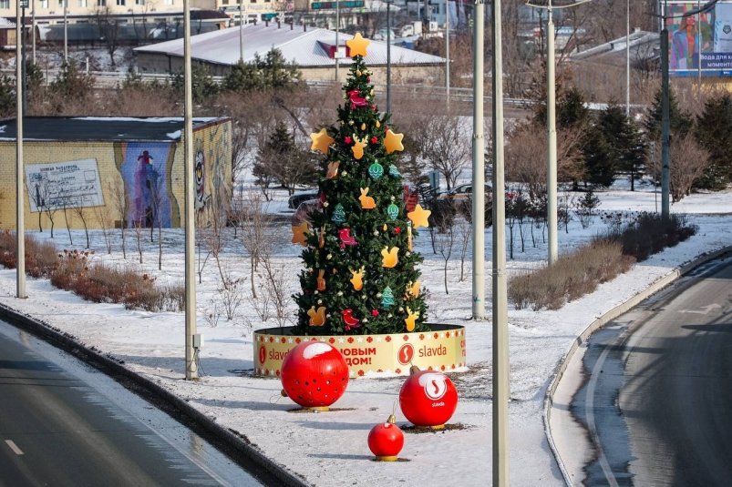 «Славда» подарила Владивостоку 8-метровую «Лесную сказку» к Новому году. Фото: Пресс-служба ГК "Славда"