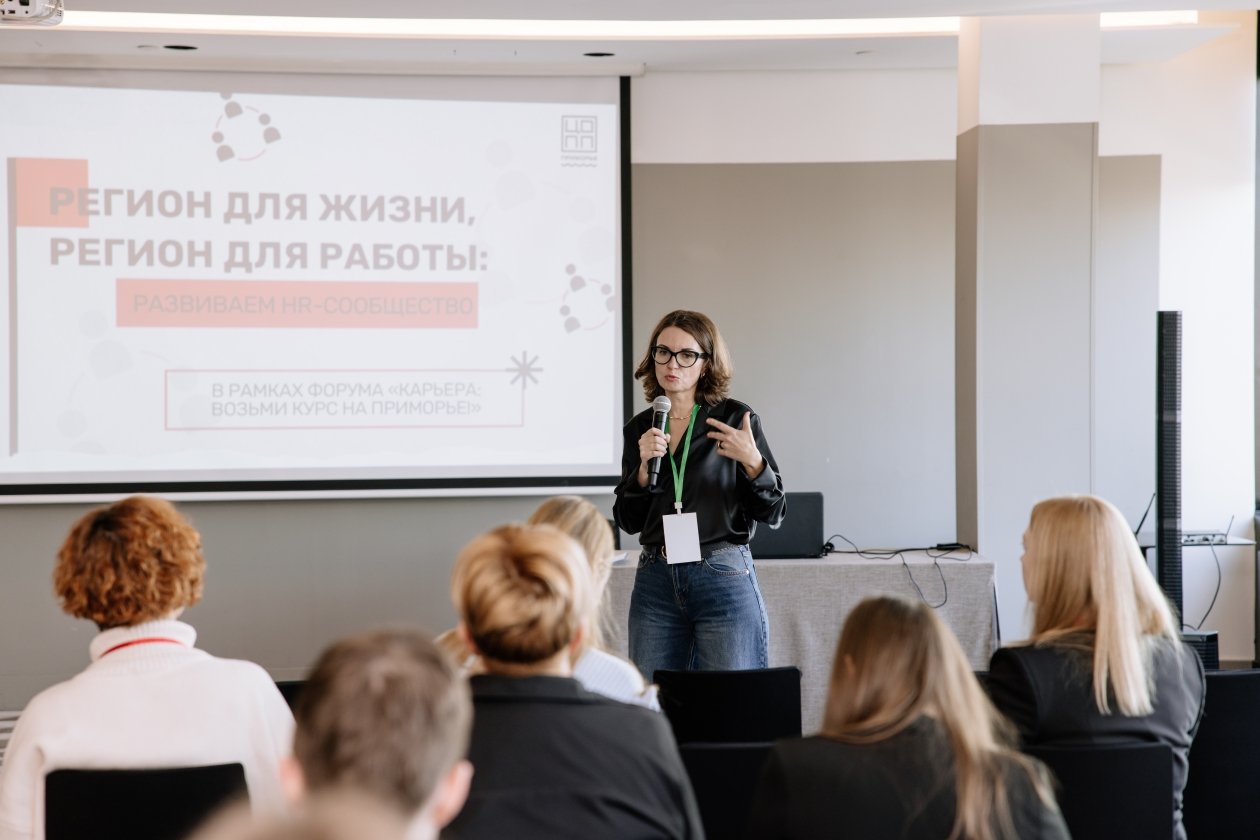 Параллельно с этим в отеле "Азимут" прошла HR-сессия для собственников бизнеса и специалистов по кадровым вопросам "Регион для жизни, регион для работы: развиваем HR-сообщество". Представители компаний совместно искали решения по повышению комфорта и привлекательности рабочих мест для талантливой молодёжи. Участников поприветствовала руководитель Центра опережающей профессиональной подготовки (ЦОПП) Приморского края Ирина Намтаева.