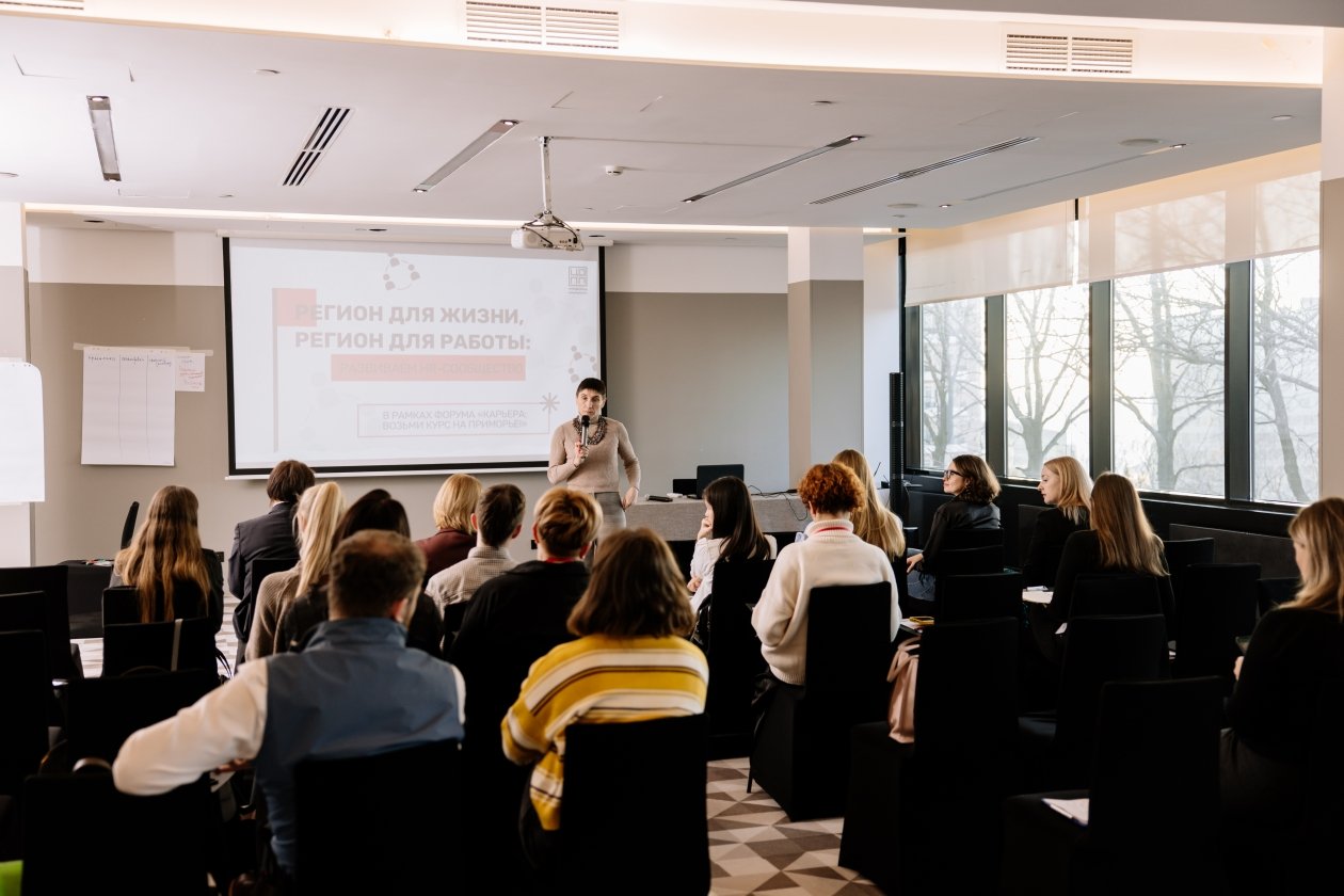 В рамках форума также состоялся открытый диалог с заместителем председателя правительства Приморского края Николаем Стецко. Он поделился со студентами личной историей профессионального становления в Приморье. В других блоках программы участникам рассказали о мерах поддержки и конкурсах. Среди ключевых проектов — конкурс "Включайся в управление", стипендия губернатора Приморского края, конкурс молодых специалистов в приоритетных отраслях экономики. Кроме того, на площадке прошла карьерная ярмарка и серия встреч с работодателями. Возможности для развития в Приморье были представлены в различных сферах, включая туризм, промышленность и другие.