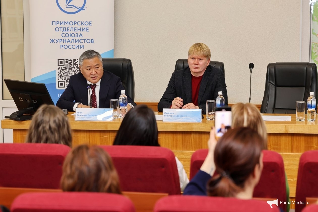 Встреча началась с диалога журналистов с главой Артёмовского городского округа Вячеславом Квоном. Он подробно остановился на трансформации городской среды и развитии инфраструктуры за последние годы.
