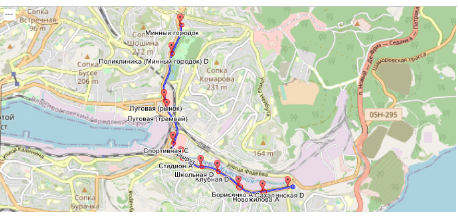 Трамвайный маршрут №6 "Сахалинская — Минный городок" включает 8 транспортных средств, всего 96 рейсов.