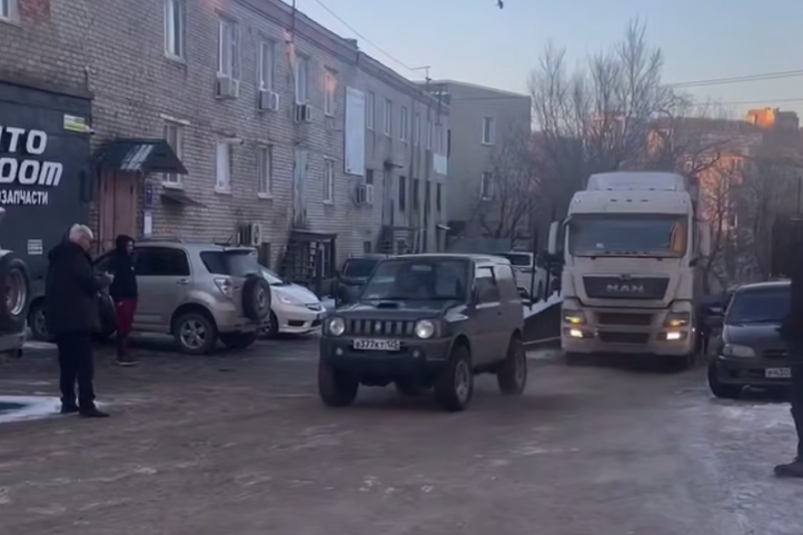 Во Владивостоке водитель Suzuki Jimny спас фуру из ледяного плена. На одном из скользких подъемов водитель большегруза не смог подняться и оказался в ловушке.