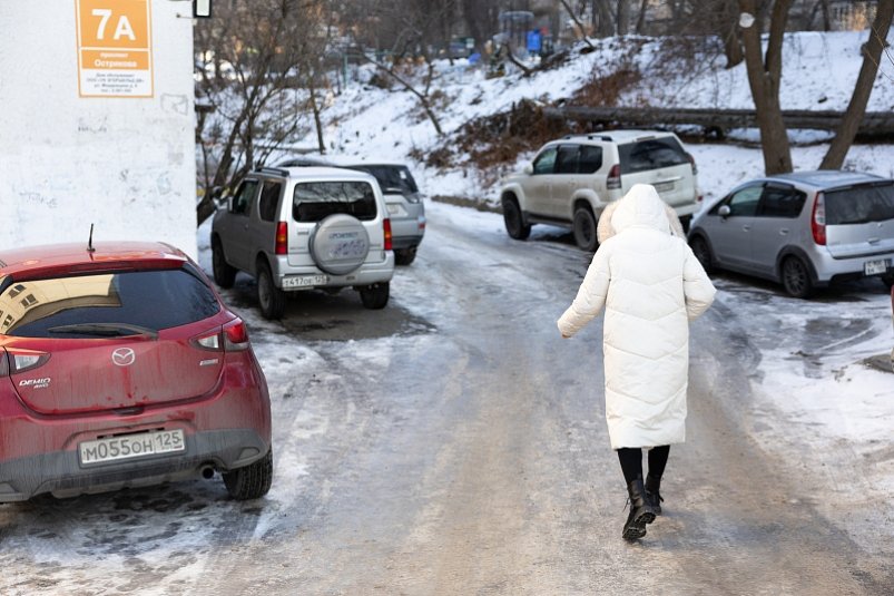 Дворы в спальных районах Владивостока превратились в ледяную ловушку — фото Скользкие подъёмы стали препятствиями для автомобилистов
