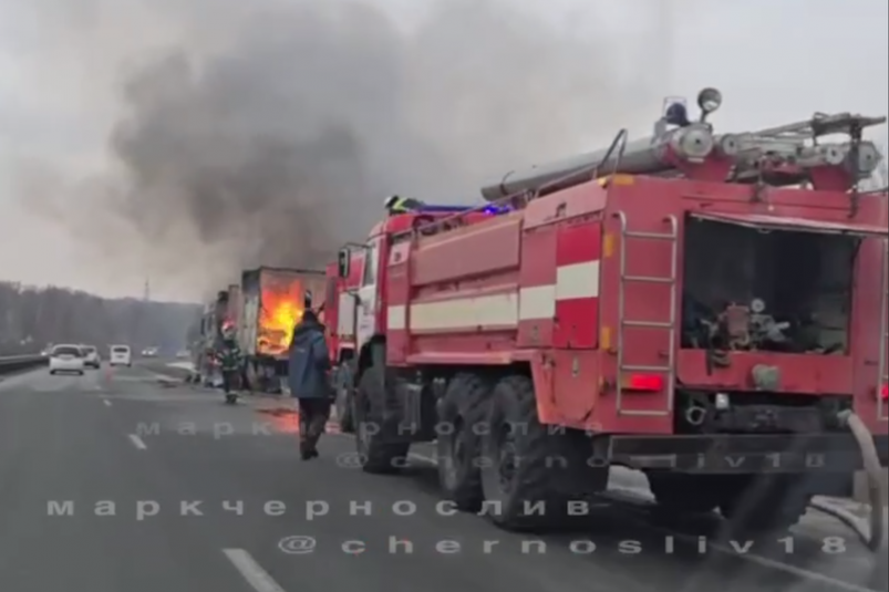 По слова очевидцев, на место прибыло несколько пожарных бригад, однако большегруз выгорел полностью.