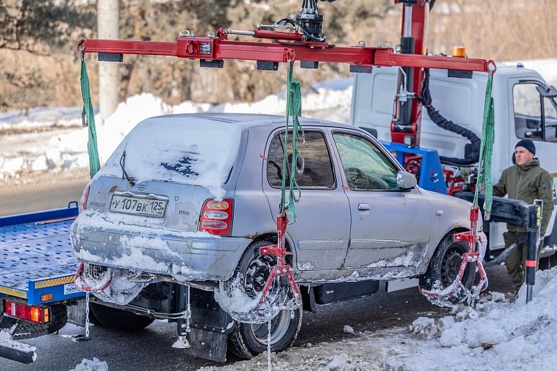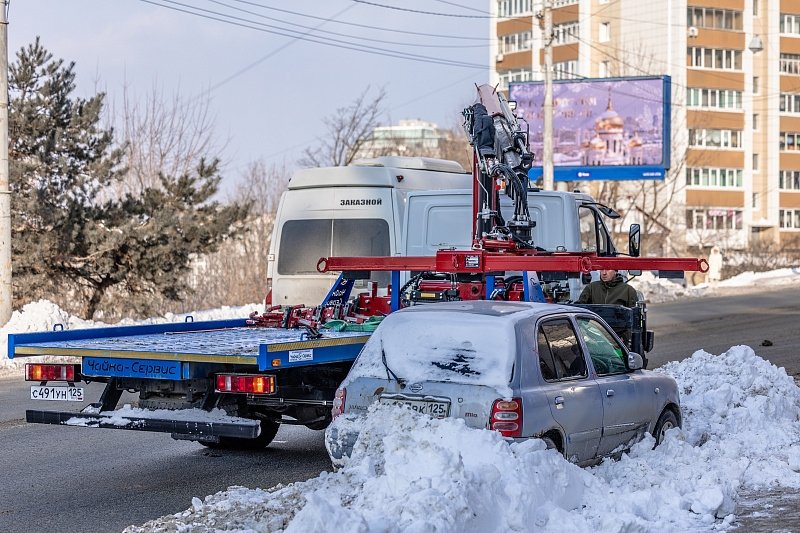 PrimaMedia, 13 января. Автомобили, мешающие уборке выпавшего 10 января снега, эвакуируют в столице Приморья. По данным администрации города, с начала года муниципальная служба эвакуации вывезла на штрафстоянку 54 машины.