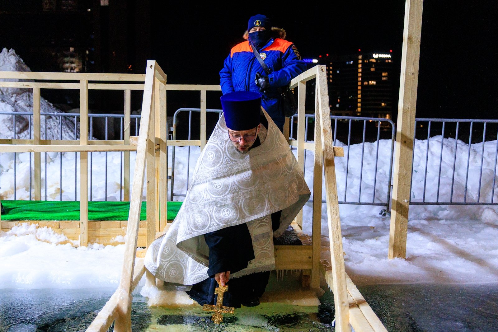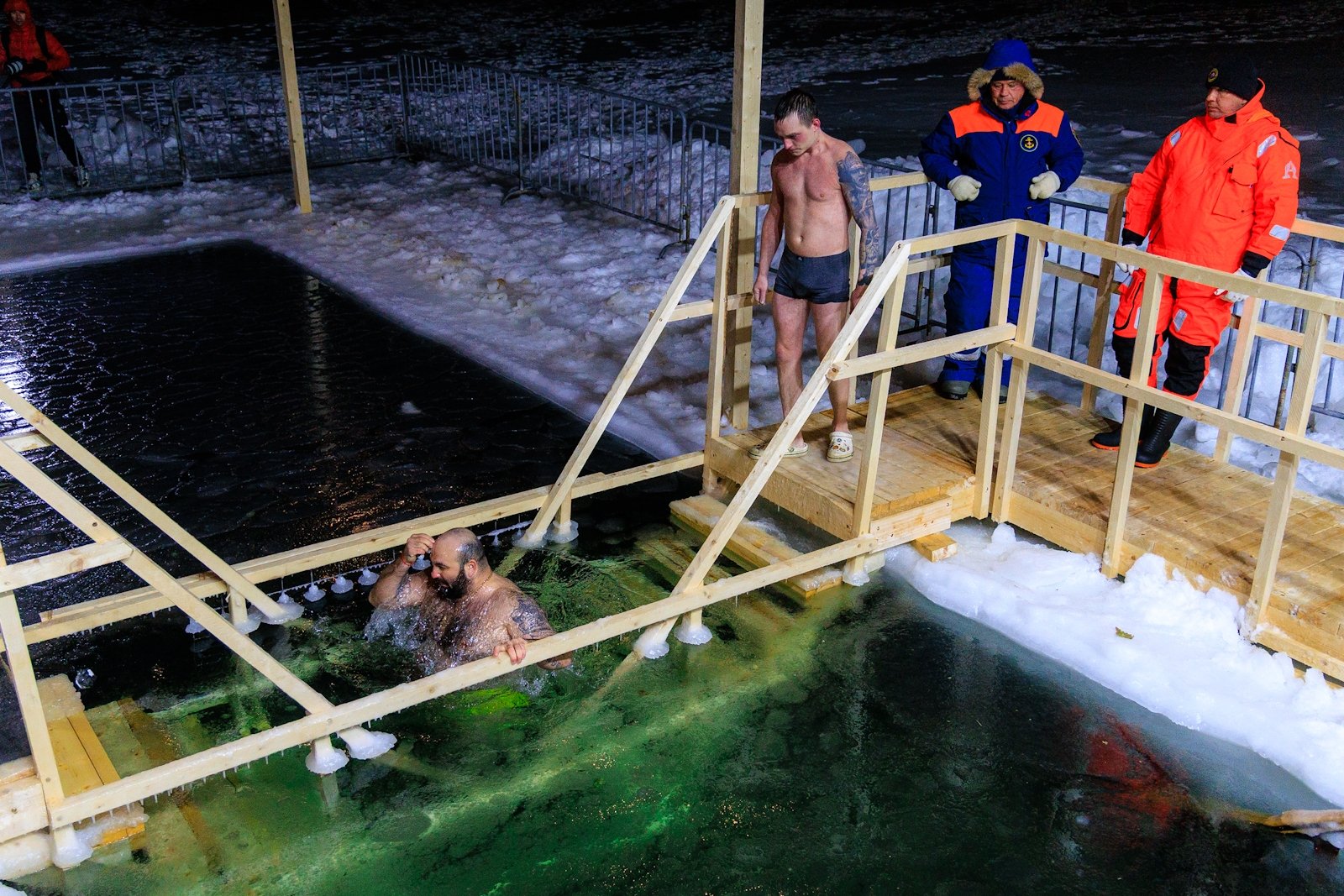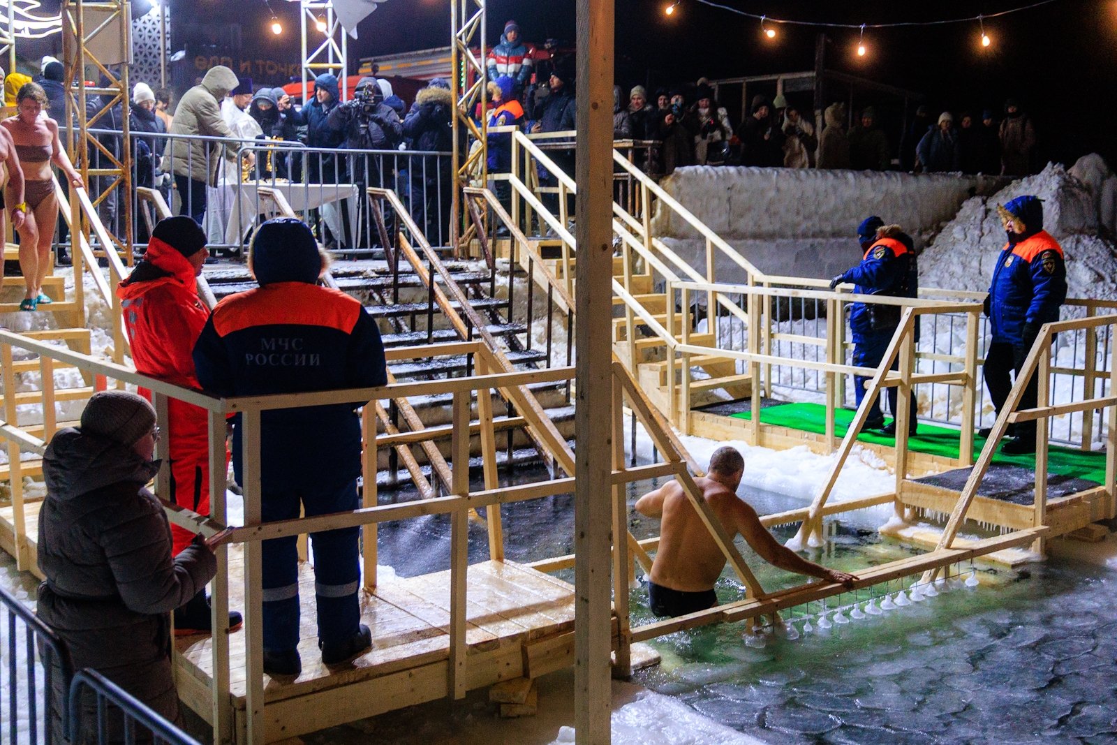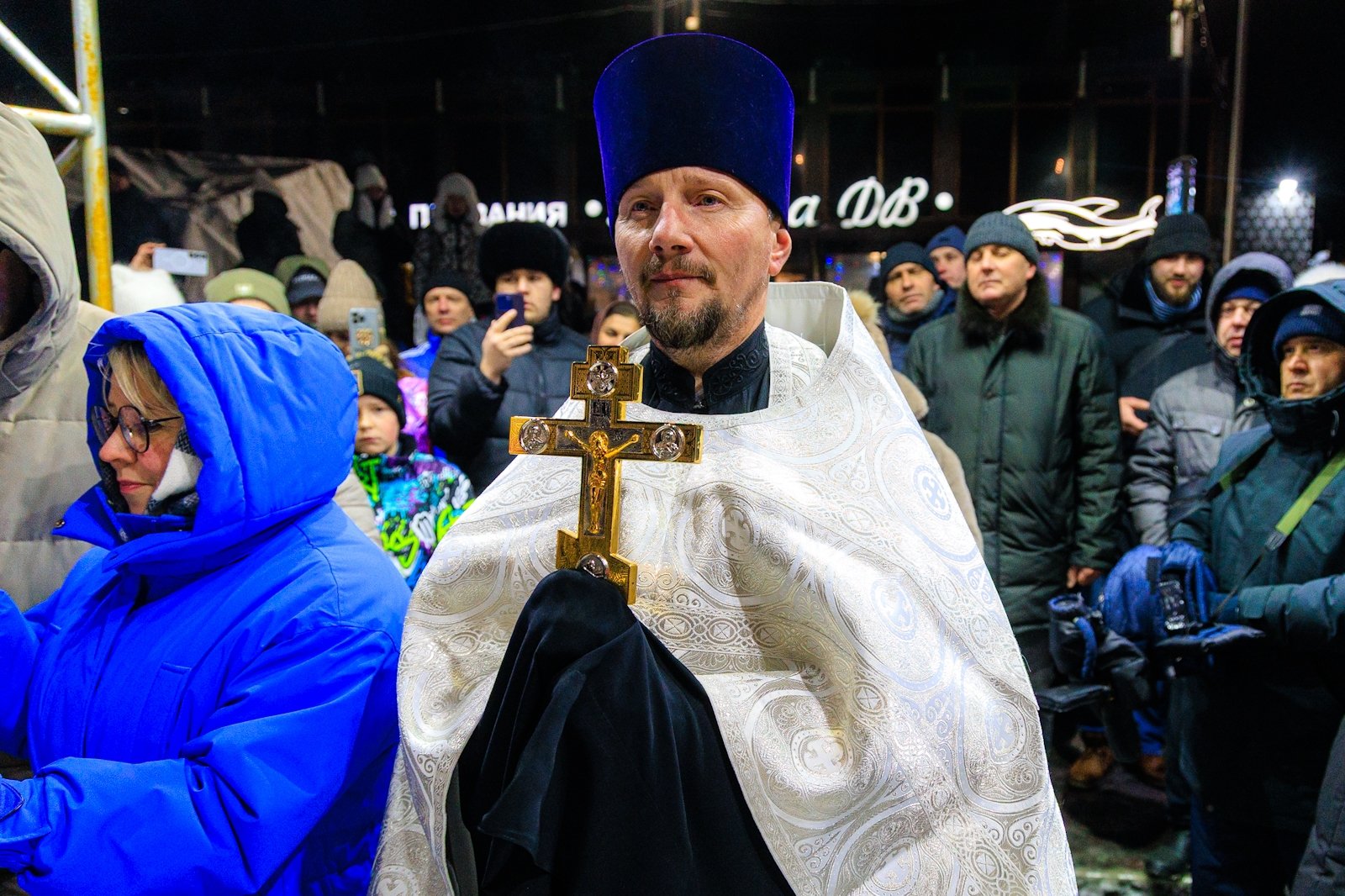К моменту освящения, которое совершил священник Димитрий Винокуров, на набережной собралось несколько десятков человек. Помимо решивших окунуться в купель за безопасностью следили сотрудники МЧС, Росгвардии, а также медики Скорой помощи. Желающие могли переодеться и согреться в ней или же, за отдельную плату, воспользоваться комфортом центра зимнего плавания "Косатка ДВ" с его горячей сауной.