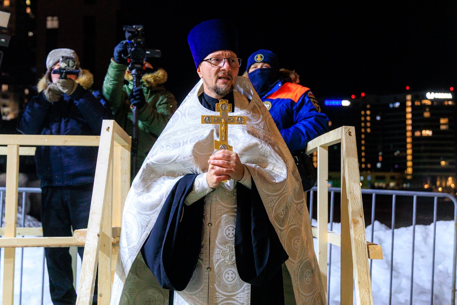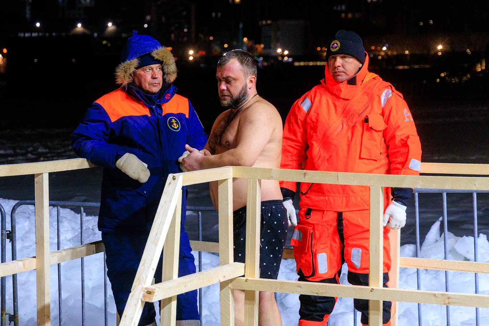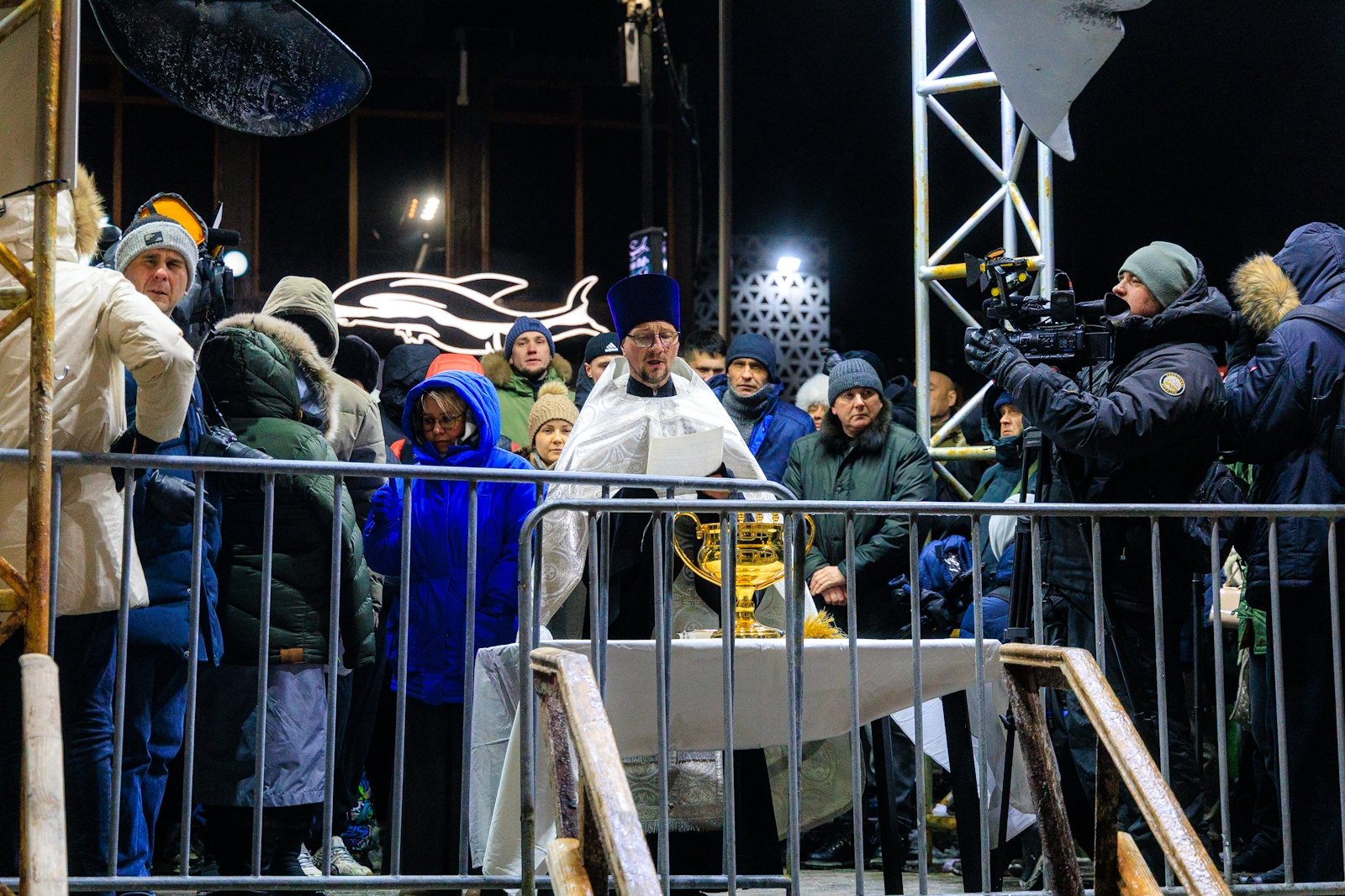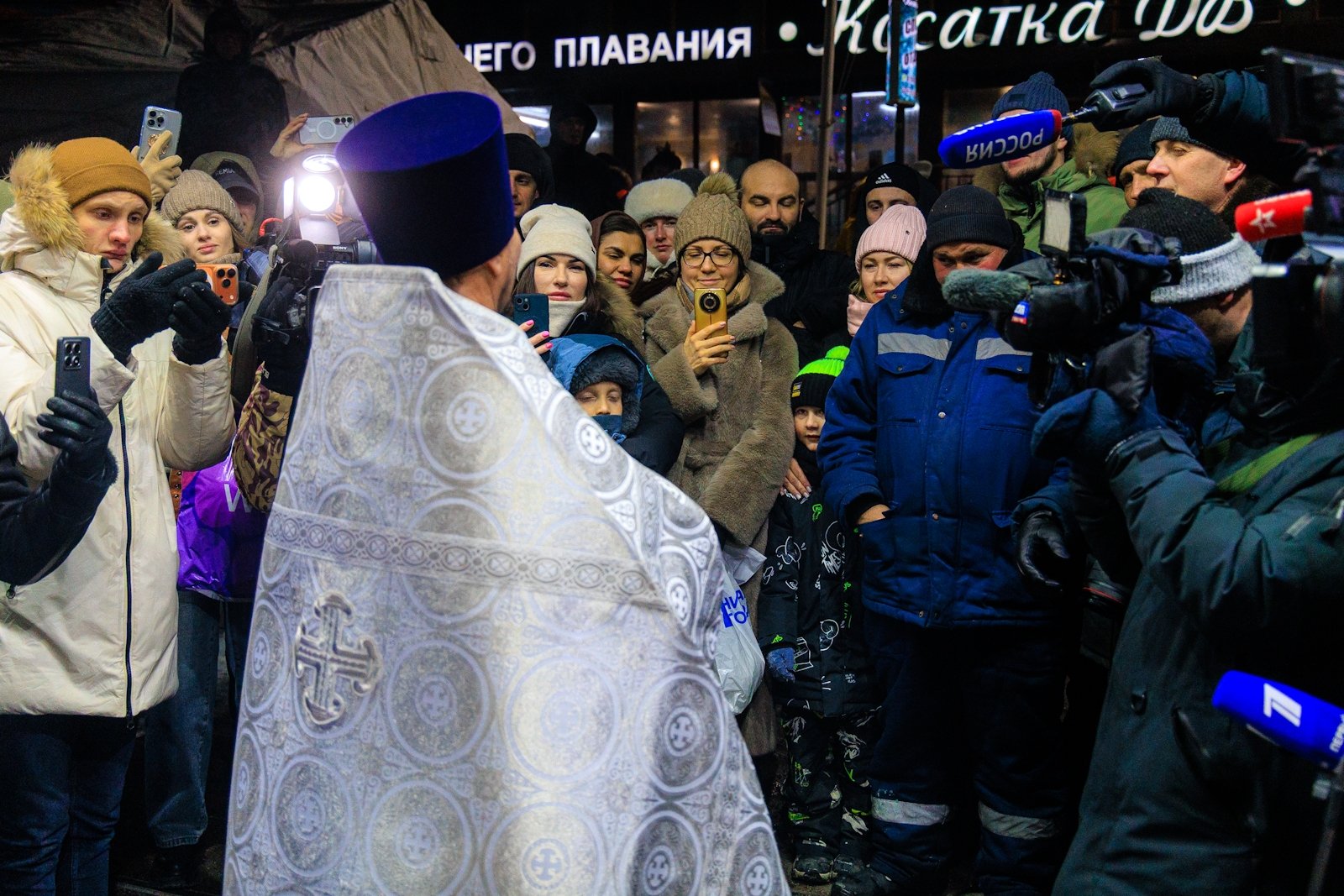 К моменту освящения, которое совершил священник Димитрий Винокуров, на набережной собралось несколько десятков человек. Помимо решивших окунуться в купель за безопасностью следили сотрудники МЧС, Росгвардии, а также медики Скорой помощи. Желающие могли переодеться и согреться в ней или же, за отдельную плату, воспользоваться комфортом центра зимнего плавания "Косатка ДВ" с его горячей сауной.