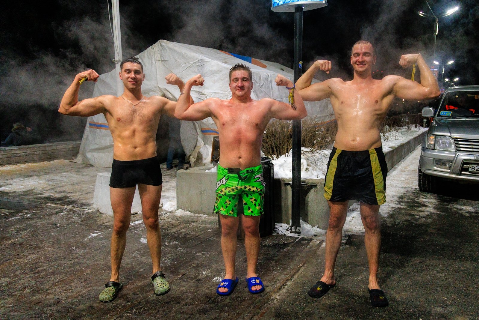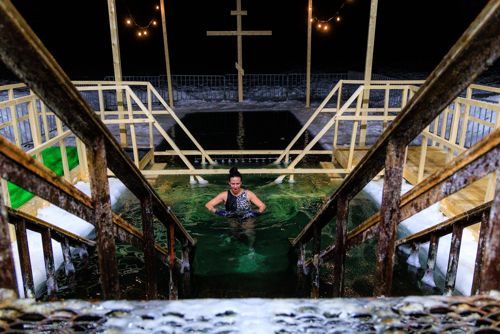 В ночь с 18 на 19 января Владивосток присоединился к великому православному празднику — Крещению Господню. Традиционным местом купаний уже много лет является набережная Спортивной гавани, где после молебна была освящена купель. В этом году погода была по-настоящему зимней: столбик термометра показывал -18°C, а температура воды была -1°C. Однако суровые условия не стали препятствием для тех, кто решил совершить символичный обряд очищения.