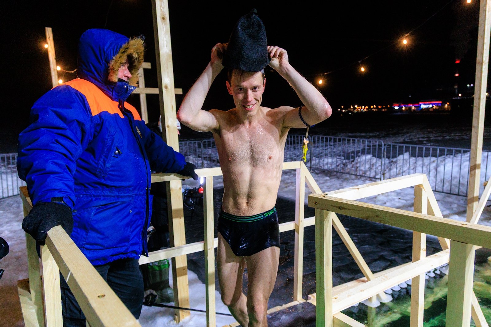 "Я не увлекаюсь зимним плаванием. Второй год только окунаюсь. В прошлом году первый раз был и год для меня получился очень неплохим. Мы очень долго планировали ребенка с женой и в этом году всё получилось. Я поэтому теперь верю в Бога и пришел окунуться сегодня", — рассказал Дмитрий.