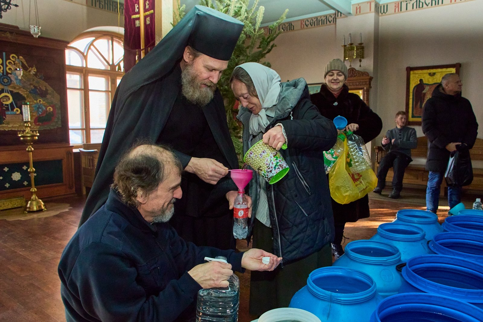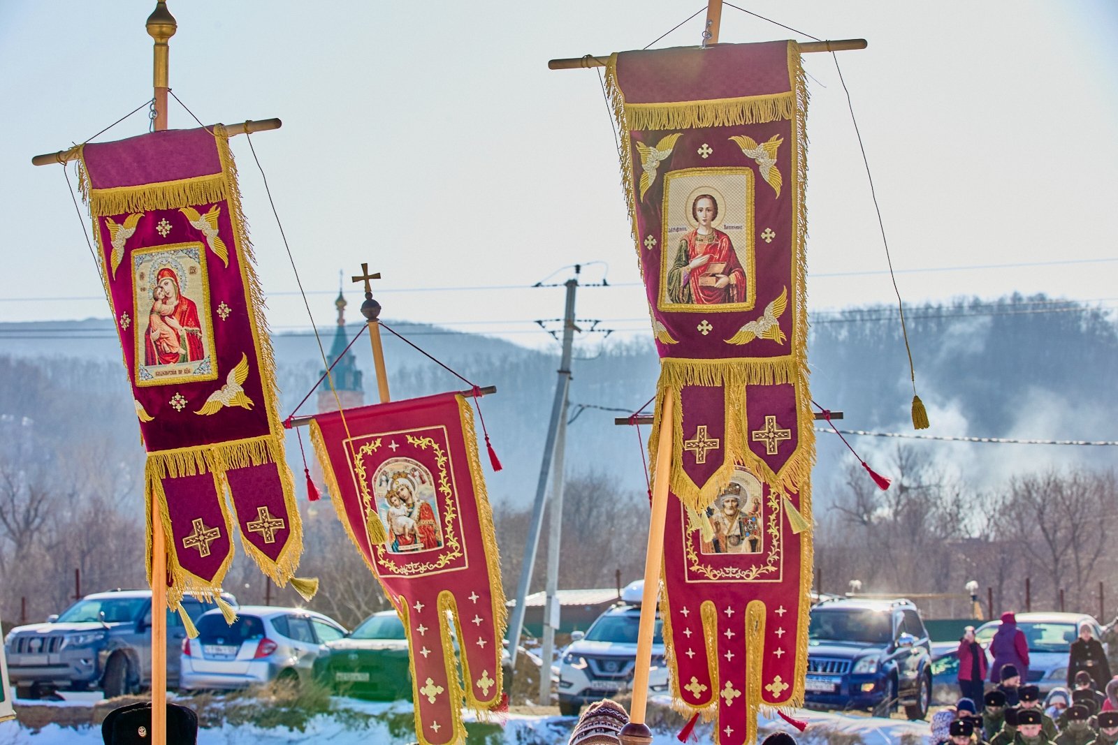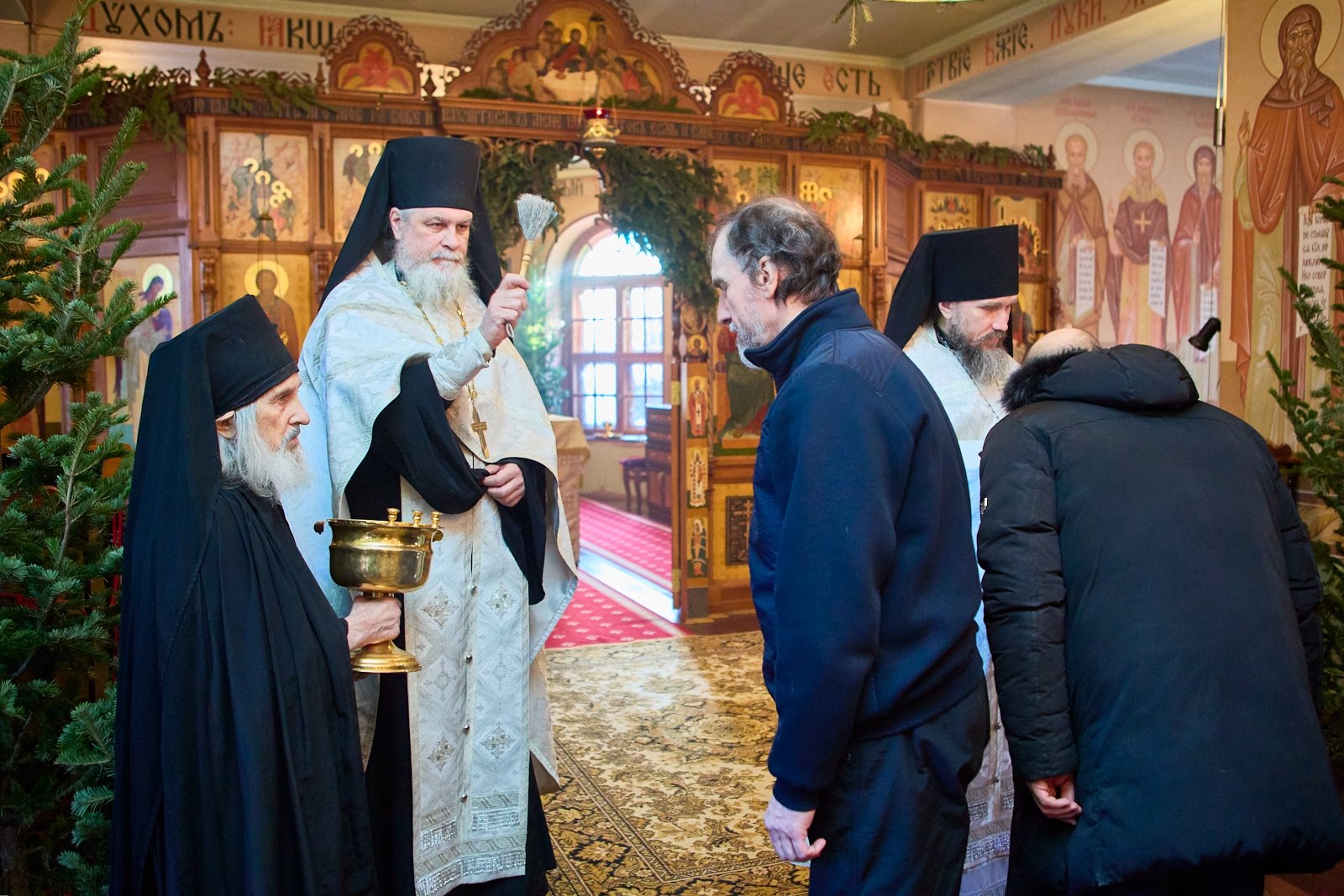 После утреннего богослужения в Свято-Серафимовском монастыре и освящения воды, все желающие смогли набрать её себе. Затем братия монастыря и другие православные люди прошли Крестным ходом до бухты Новик, где заранее была оборудована купель.