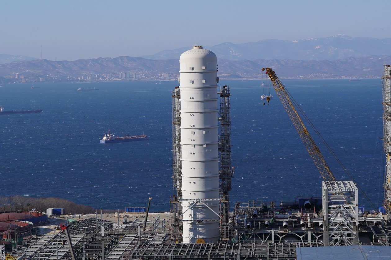 — Сегодня завод — это масштабное строительство, мы возвели 5 вспомогательных объектов, еще на 30 работы в активной фазе. В прошедшем году мы завершили инженерную подготовку площадки, перешли от земляных работ к строительно-монтажным. Продолжается заливка фундаментов, монтаж металлоконструкций и резервуаров хранения, установлено больше 200 единиц оборудования. Строители также приступили к возведению модульных зданий. Большой прогресс и на морском терминале, который предназначен для отгрузки готовой продукции. Мы завершили погружение свай терминала и его бетонирование, начали установку оборудования. На главном энергообъекте завода, подстанции на 220 кВ, выполнен монтаж подземных инженерных сетей и двух трансформаторов отечественного производства, завершена установка зданий ЗРУ-10 кВ и КРУЭ-220 кВ. Сейчас в них выполняется внутренняя отделка.