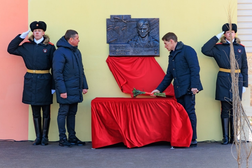 В полдень у дома, где жил Герой России, собрались родственники, боевые товарищи, соратники и близкие. Церемонию открытия мемориальной доски начал Олег Кожемяко. Губернатор поделился воспоминаниями о погибшем товарище, чья жизнь всегда была связана с армией.