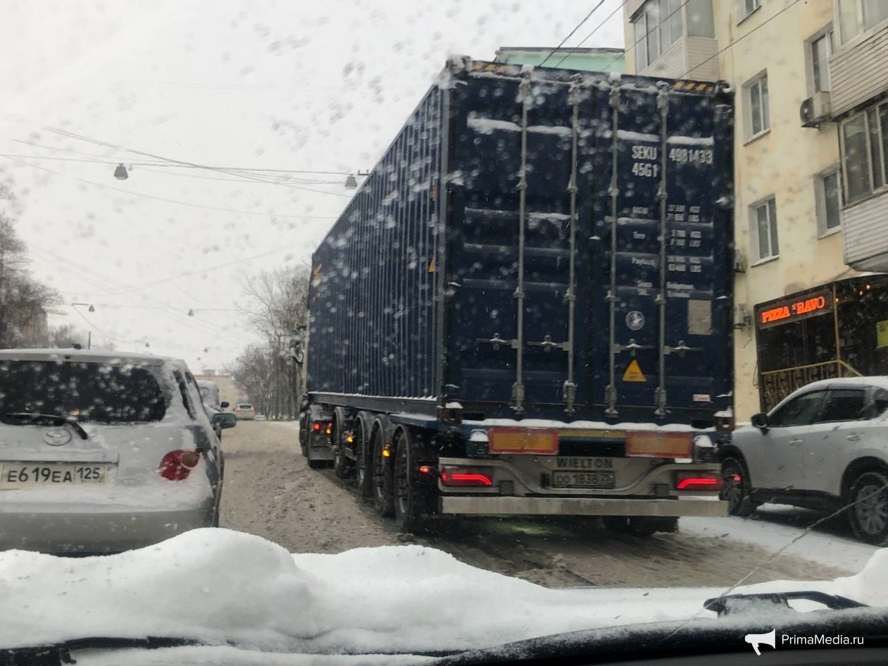 Обновлено 16.33. По данным пресс-служба УМВД России по Приморскому краю, ГАИ ввела ограничение на въезд во Владивосток большегрузного транспорта на время непогоды.