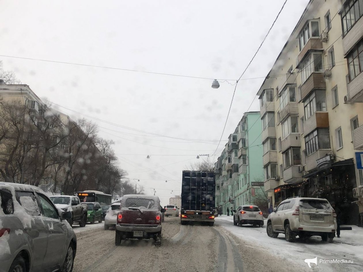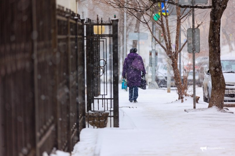 С добрым снежным утром: зимняя сказка Владивостока в объективе ИА PrimaMedia Южный циклон принес в город осадки