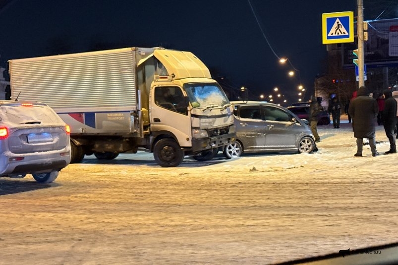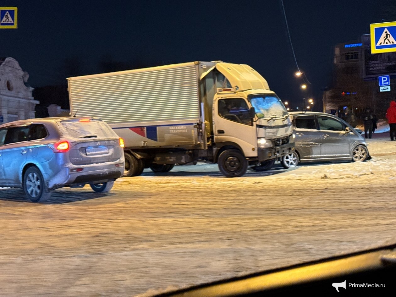 PrimaMedia, 5 февраля. В центре Владивостока произошло сразу два ДТП. Легковые машины, внедорожник и грузовик столкнулись рядом с торговым центром "Авангард", сообщил с места корр. ИА PrimaMedia.