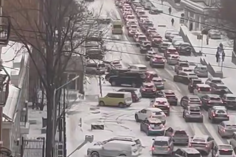 В четверг, 5 февраля, снег во Владивостоке буквально парализовал некоторые улицы и районы города. Автомобилисты сообщали о километровых пробках и массовых авариях. Большегрузы не могли двигаться в подъемы и полностью перекрывали дороги.