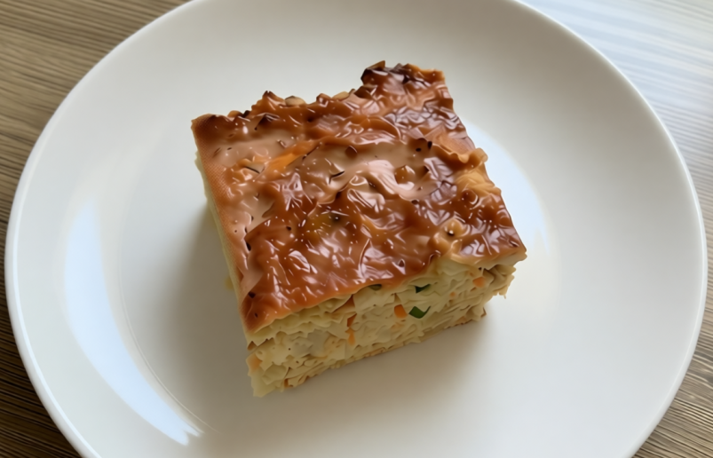 Готовую запеканку немного остудить, нарезать порциями и подавать со сметаной или овощами. Приятного аппетита!