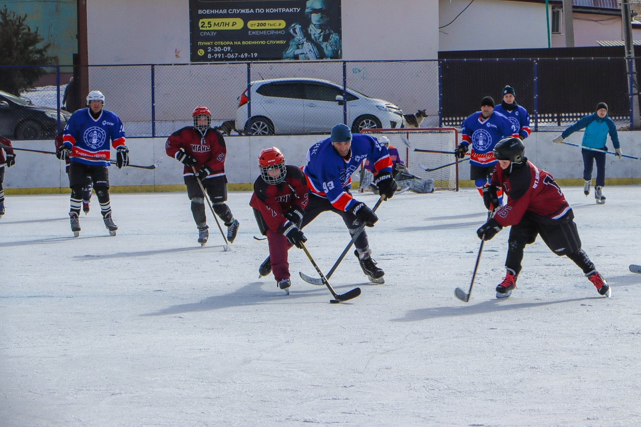 Две команды — отцов и их детей, несмотря на зимнюю холодную погоду, провели два напряжённых матча. Соревнования традиционно состоялись на многофункциональной площадке посёлка возле школы №1.