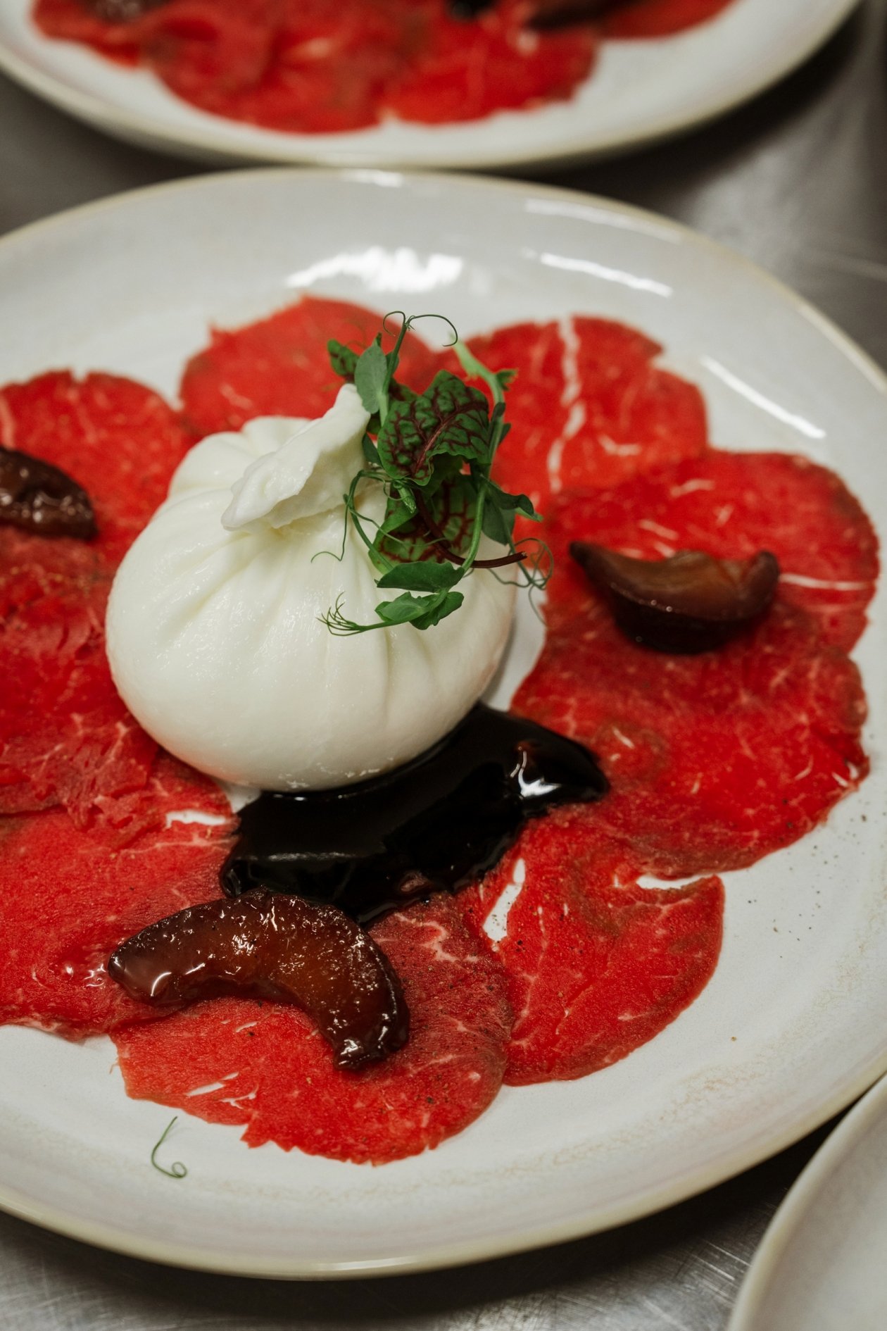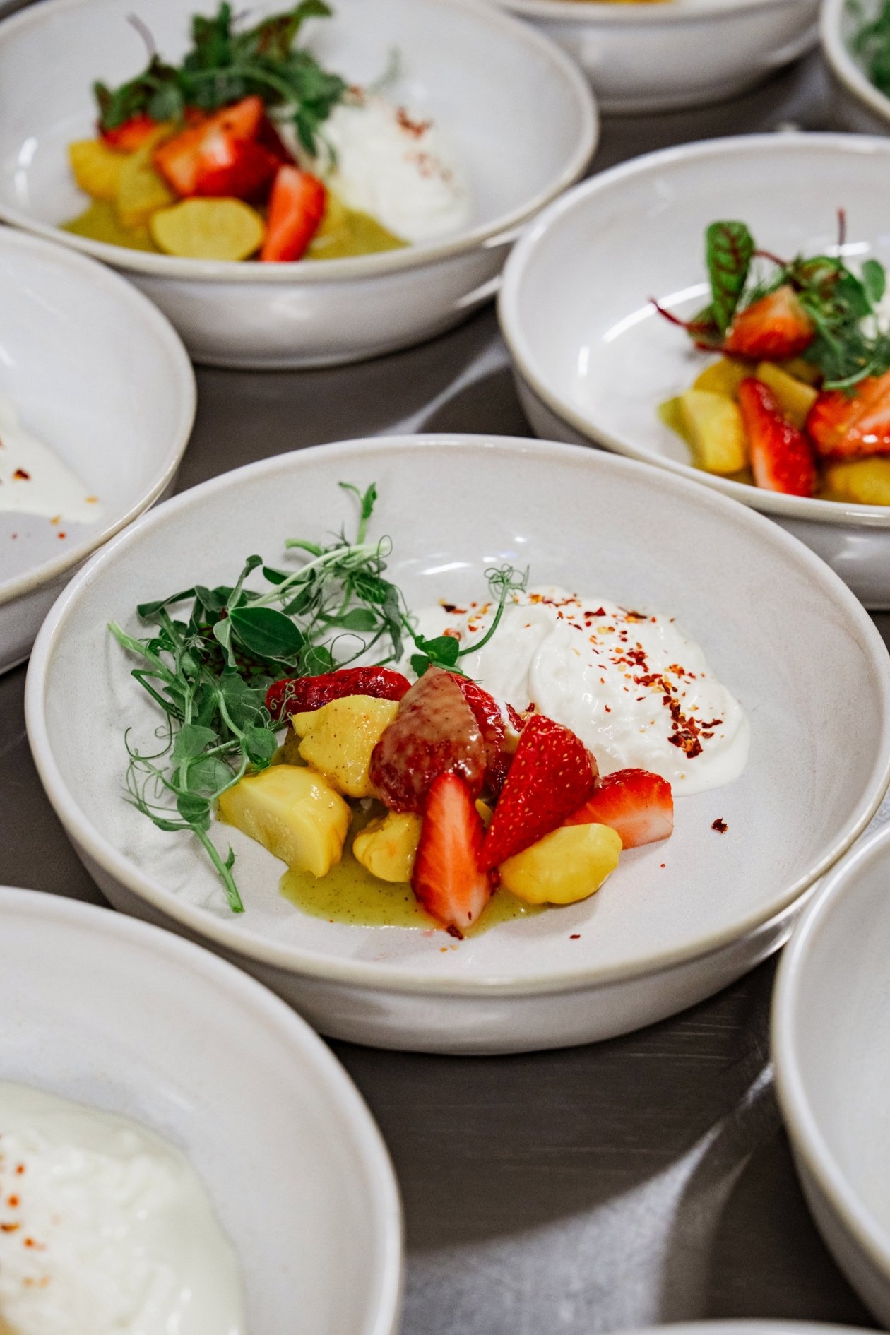 Сыр в этот вечер шефы использовали в самых разных форматах — от холодных закусок до горячих блюд, парфе и десертов. В меню вошли хумус из рикотты, страчателла с маринованными патиссонами, говяжья вырезка с бурратой, запечённый халлуми, шао као с домашними сырами, парфе с подкопчённой скаморцей.